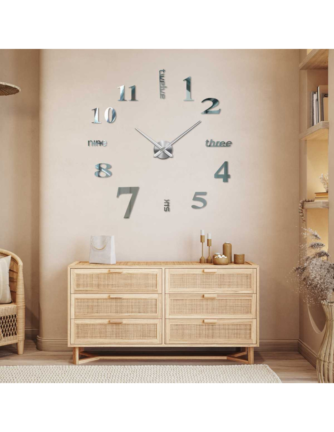 Objevte stylové nástěnné hodiny s nastavitelným průměrem až do 130 cm, které vyniknou jako výrazný prvek v obýváku, ložnici, kanceláři či vstupní hale.