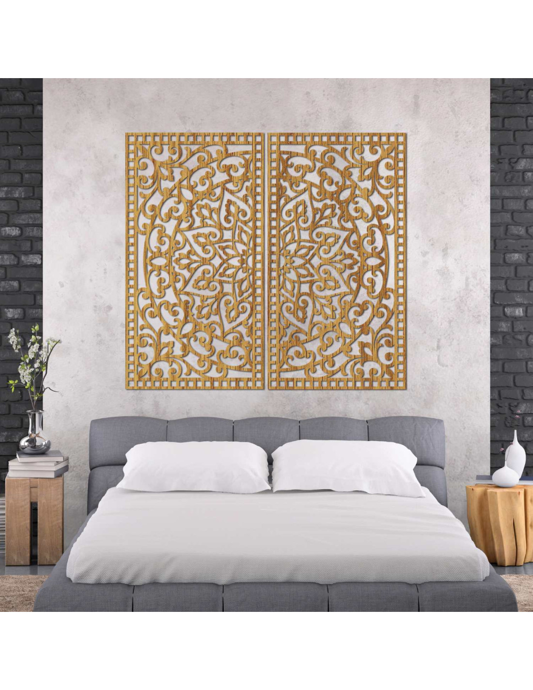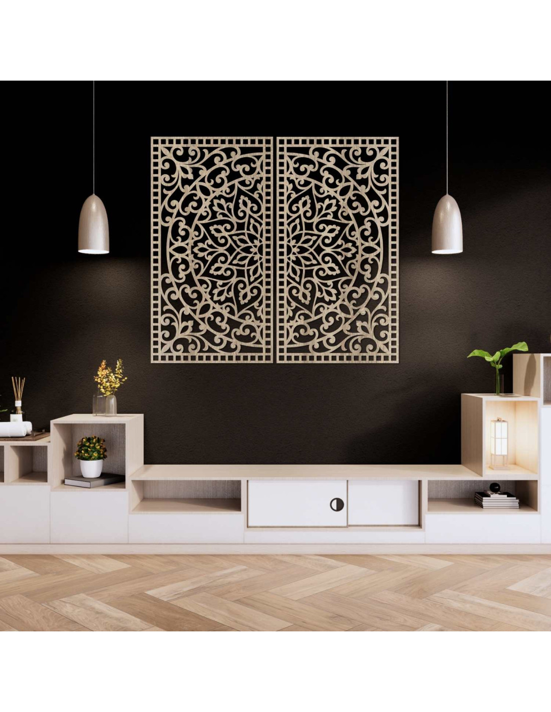 SentopElegantní dřevěná dekorace s jemnými ornamentálními prvky spojuje klasické vzory s moderním provedením. Symetrický design s důrazem na detail vytváří pocit harmonie a rovnováhy . Tato dekorace je dokonalým způsobem, jak dodat prostoru jedinečný umělecký prvek. Díky preciznímu vyřezávání vyniknou i nejmenší detaily.