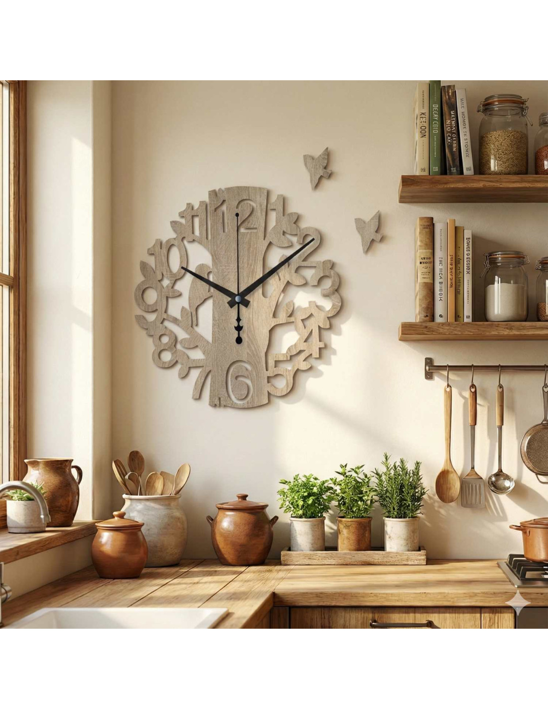 Dodejte svému prostoru osobitý charakter s dřevěnými nástěnnými hodinami s motivem ptáků. Přírodní design s kvalitní grafikou a hladkým povrchem působí harmonicky, elegantně a minimalisticky.