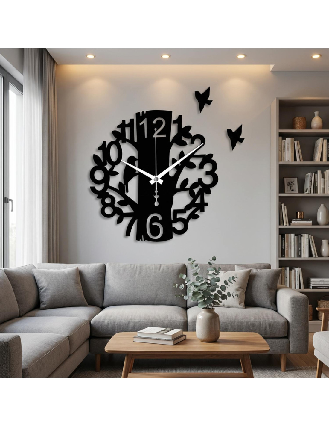 Nástěnné hodiny strom života ptáček, černé ručičky, 20 až 50 cm