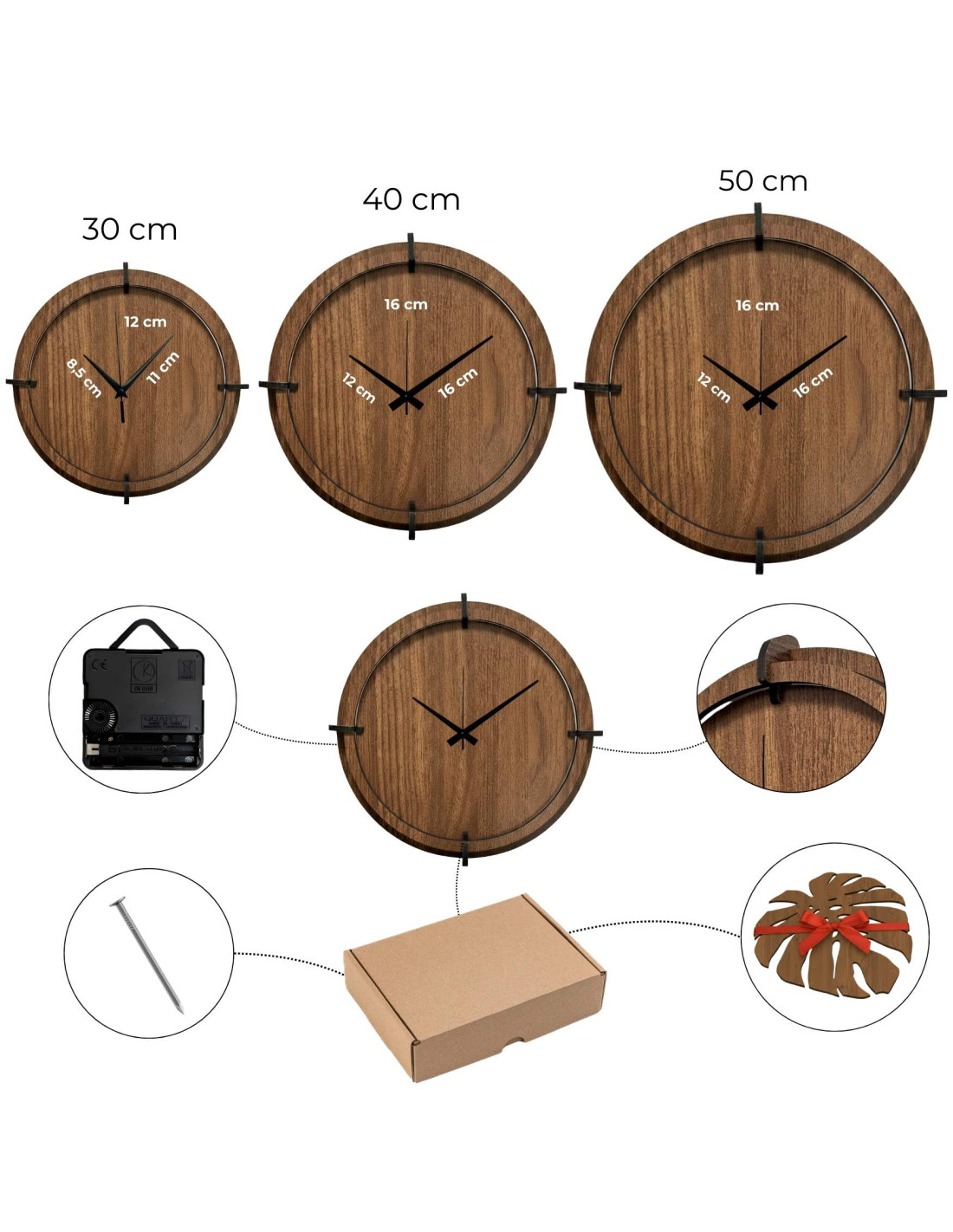 • Průměr hodin: na výběr 30 cm, 40 cm nebo 50 cm