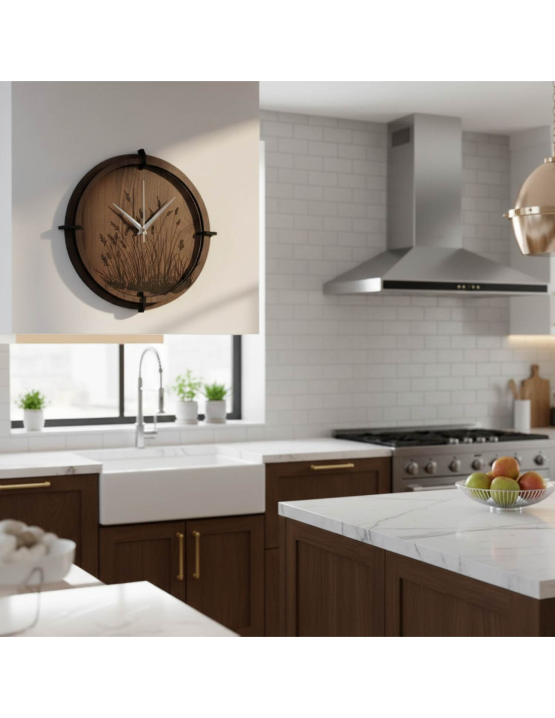 Nástěnné hodiny s motivem trávy | Ořech venge