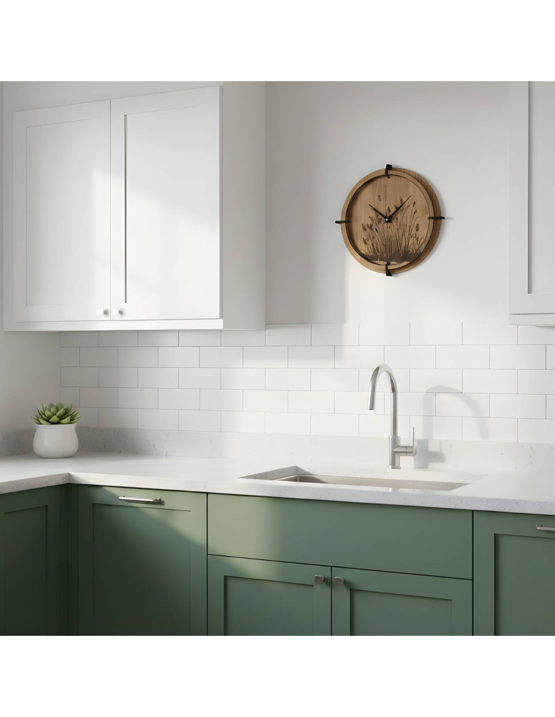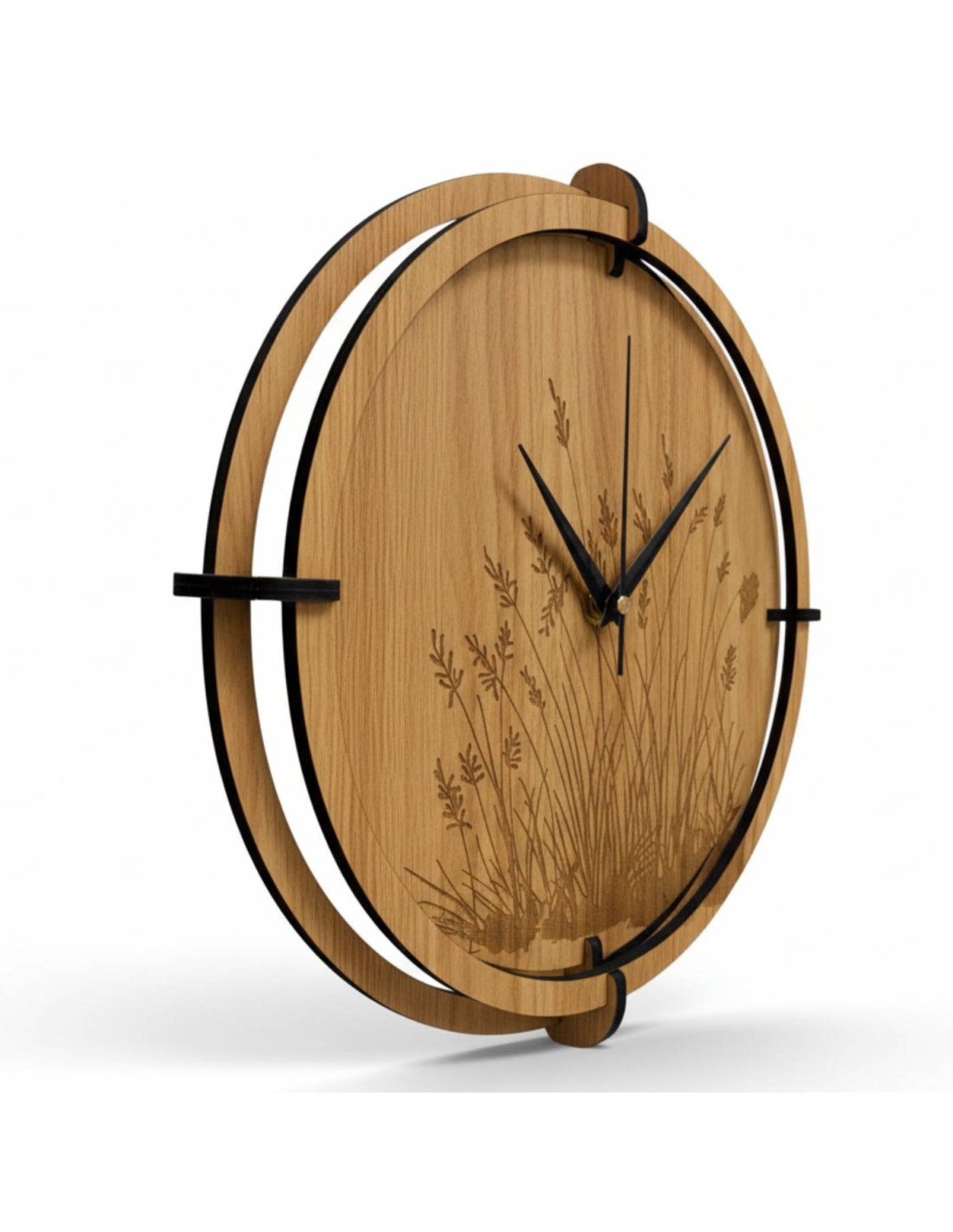 Moderní dřevěné nástěnné hodiny s jemně gravírovaným přírodním motivem luční trávy vnášejí do interiéru klid, harmonii a nadčasovou eleganci . Tichý quartzový mechanismus zajišťuje přesný a nerušivý chod, ideální do obývacího pokoje, ložnice i pracovny . Vyrobeno z kvalitní HDF desky s důrazem na detail, čistý design a jednoduché zavěšení bez vrtání. Lokální slovenská výroba činí z každého kusu originální designový doplněk . Vyberte si ideální rozměr a dopřejte svému interiéru dotek přírody.