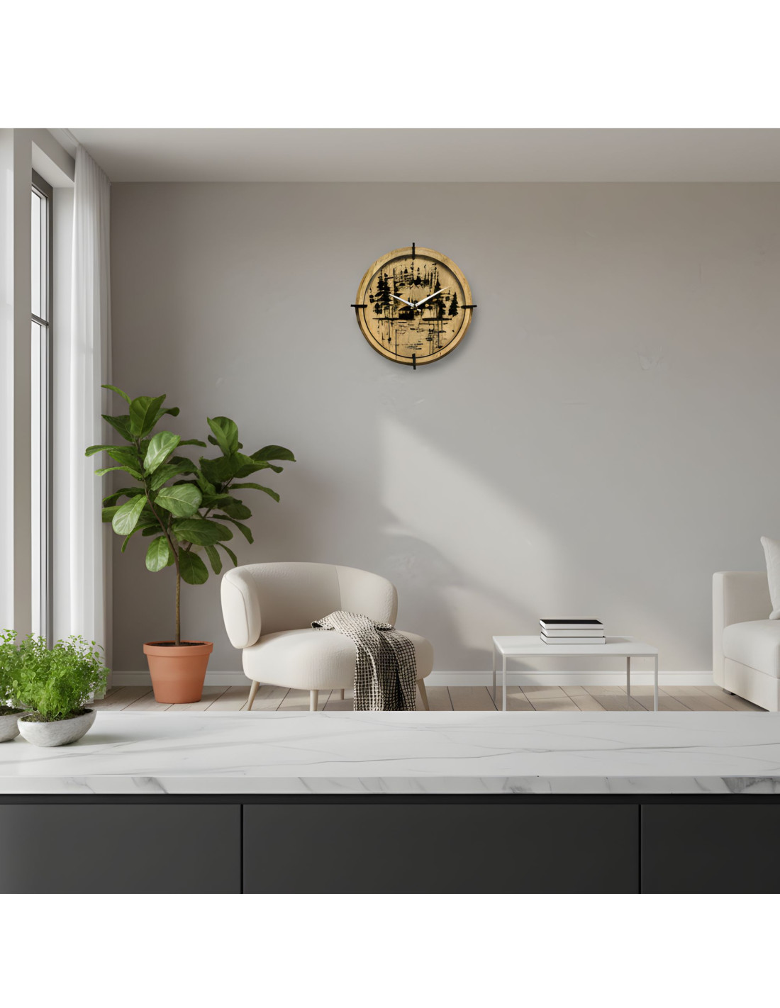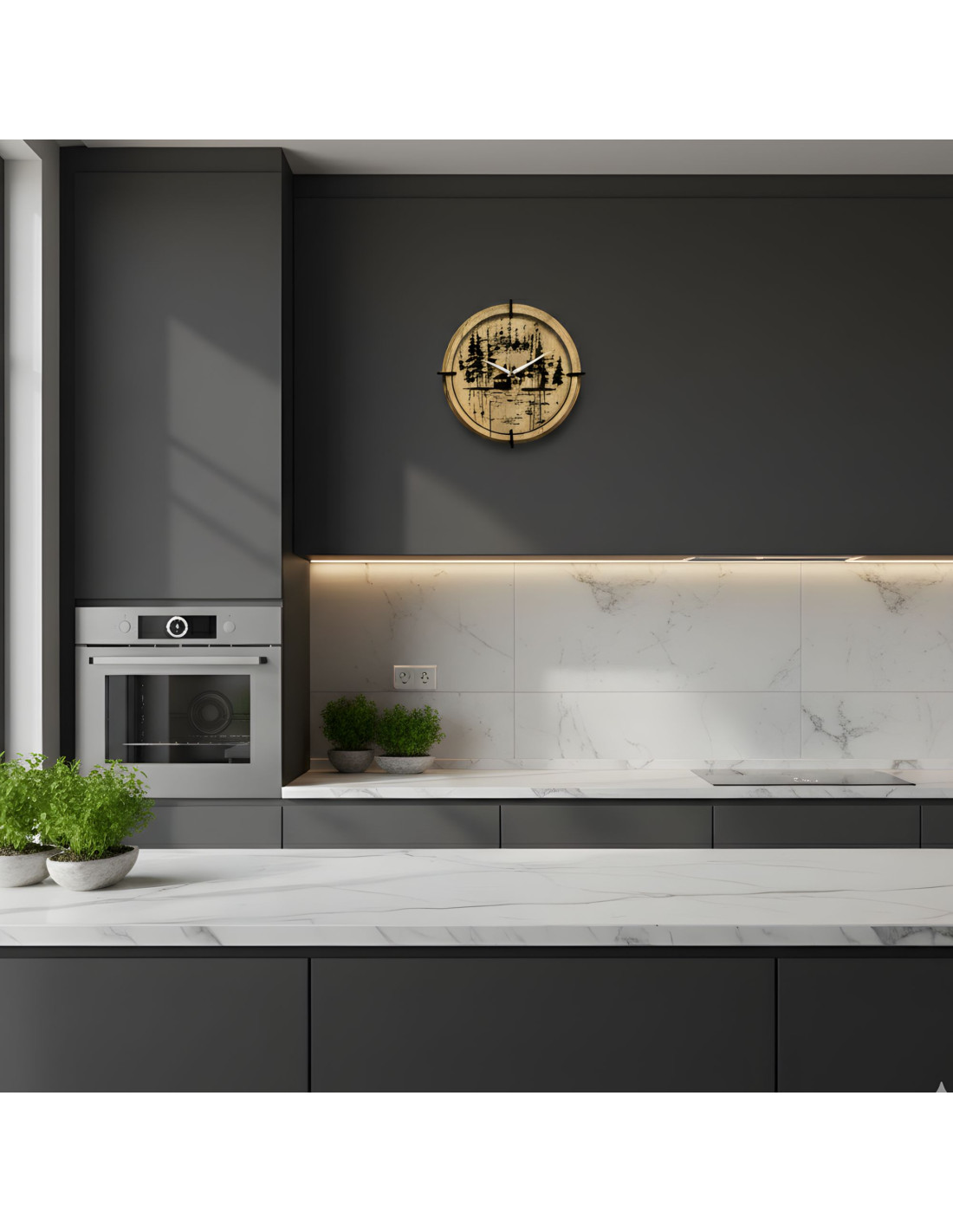 Dřevěné hodiny s přírodní scenérií spojují estetiku lesa s přesným měřením času a tichým mechanismem , čímž vytvářejí uklidňující atmosféru vhodnou do obývacího pokoje, ložnice, pracovny, kanceláře či na chatu.