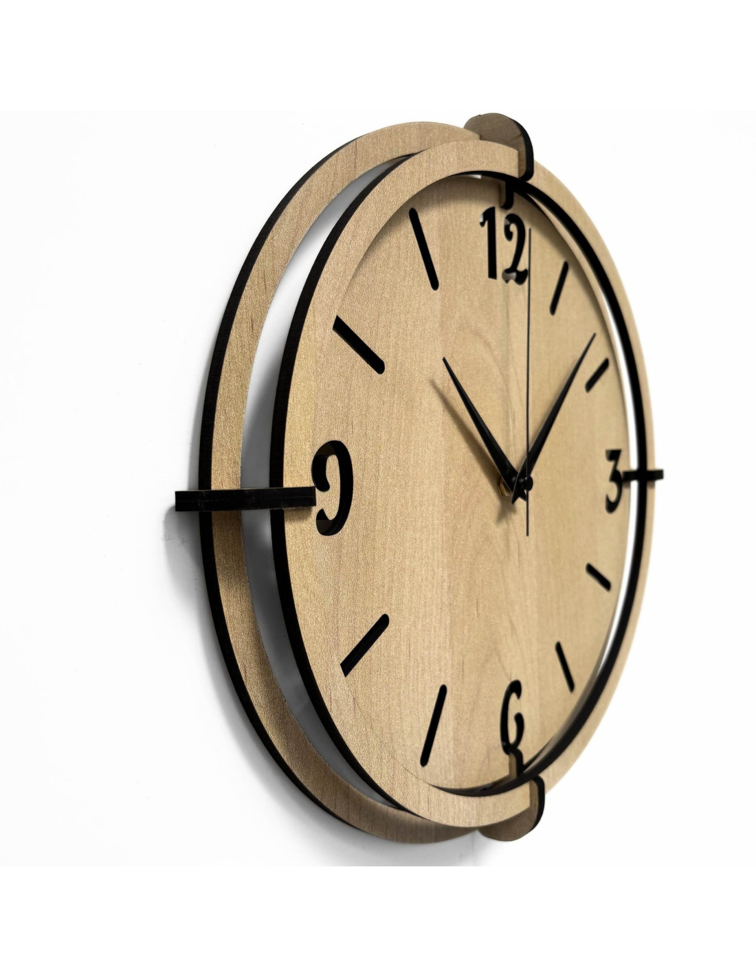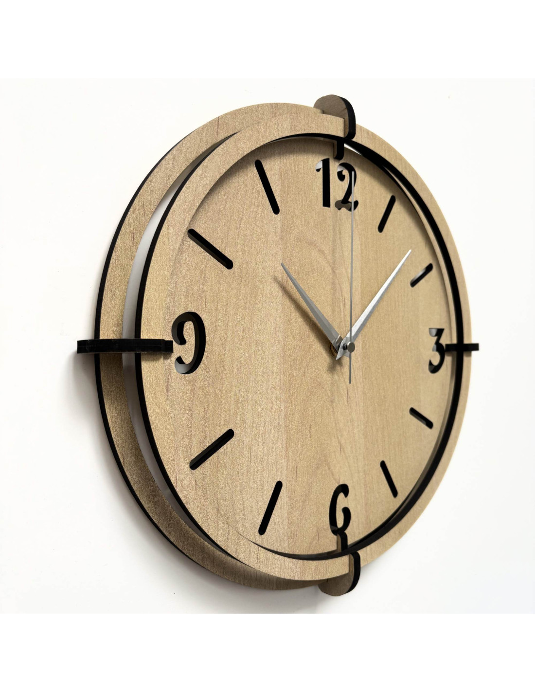 Tyto nástěnné hodiny z HDF dřevěného materiálu spojují moderní materiál s poctivým řemeslem.