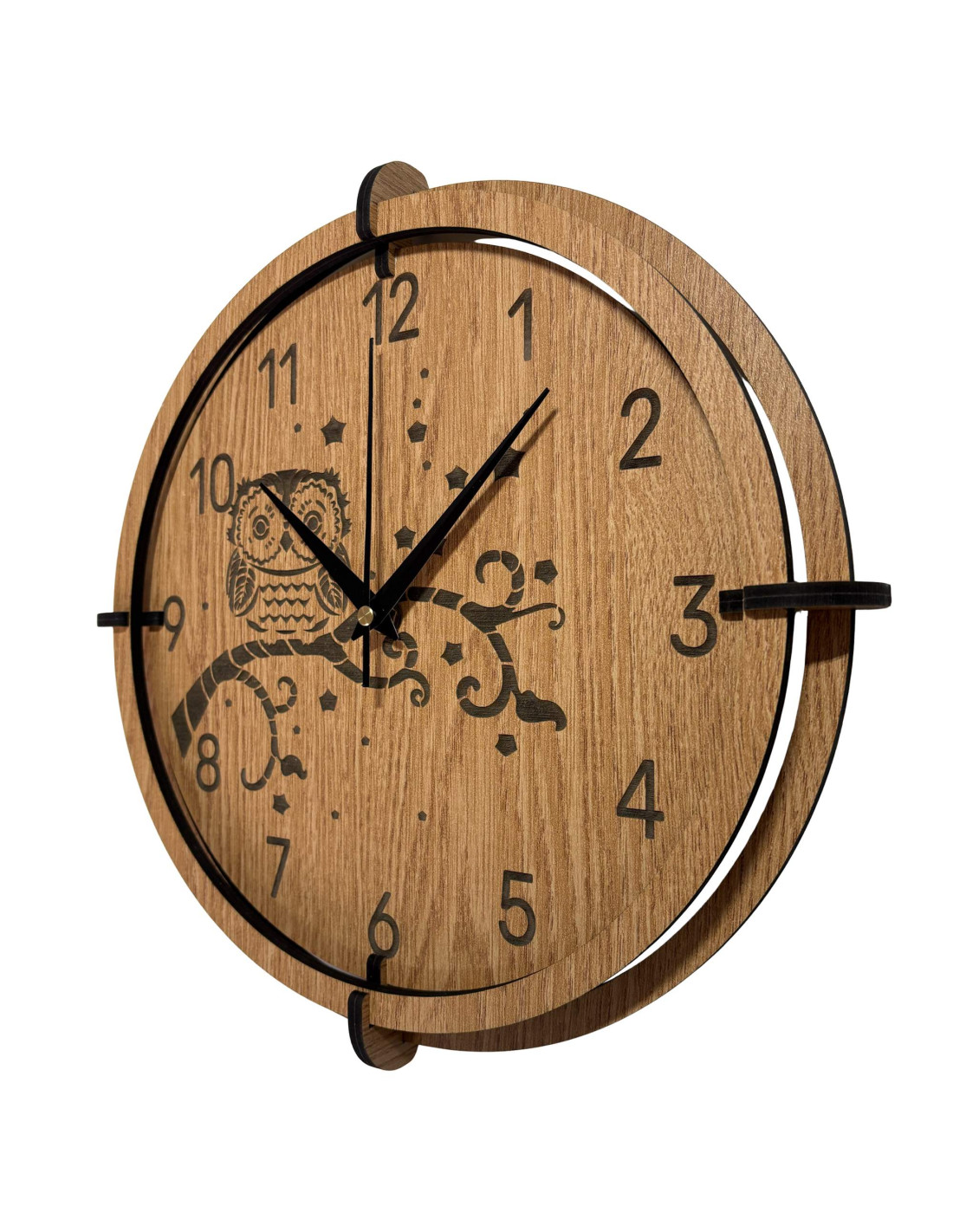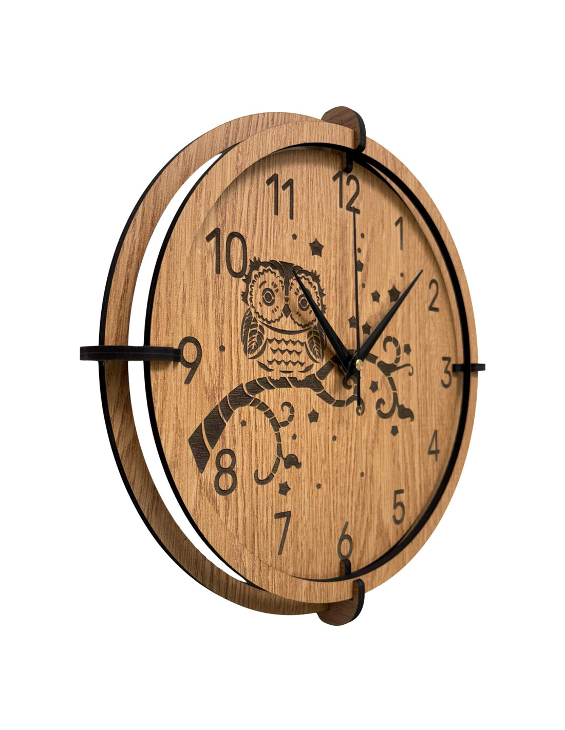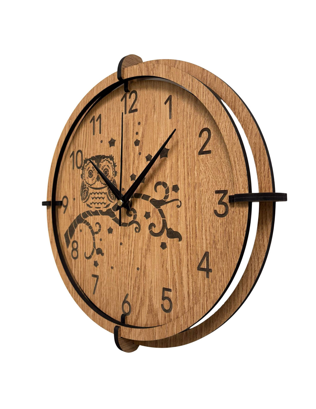 Dřevěné nástěnné hodiny Sova na větvi| Dub