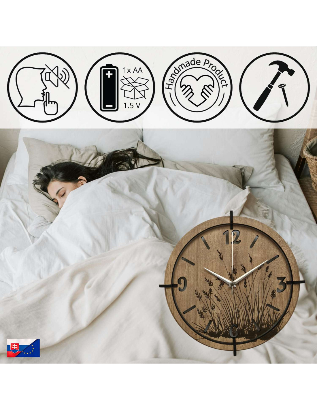 - Vyrobeno na Slovensku – lokální výroba, precizní zpracování a důraz na detail dělají z každých hodin originál.
