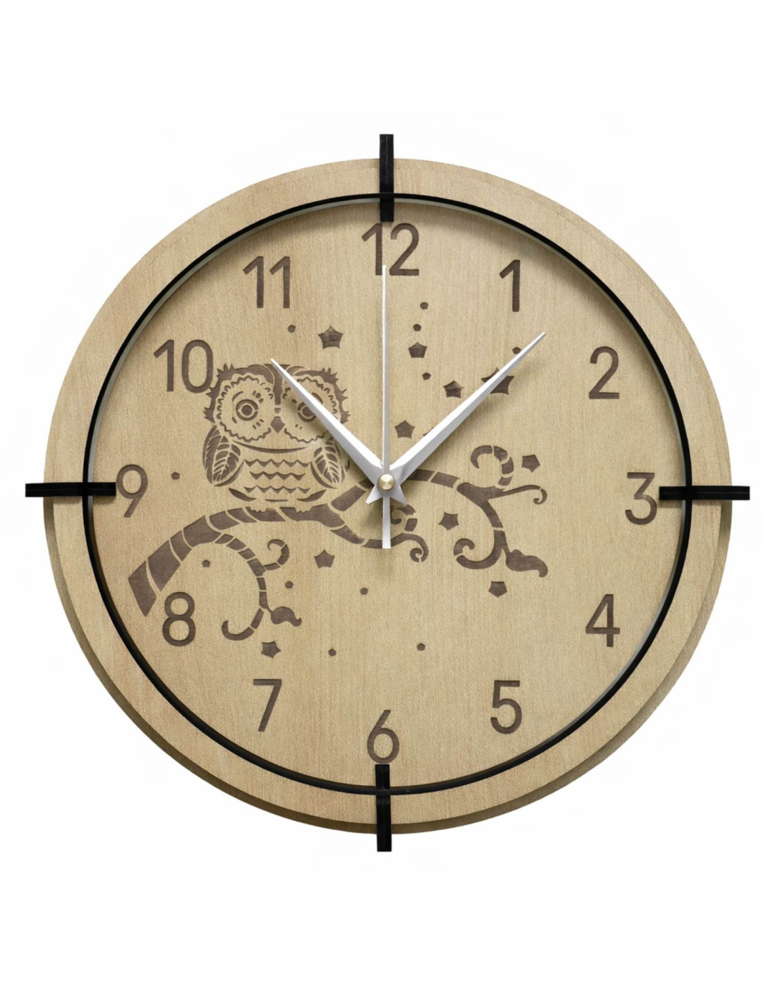 Moderní dřevěné nástěnné hodiny javor s jemným gravírovaným motivem sovy pro děti přinášejí do interiéru klid a harmonii .