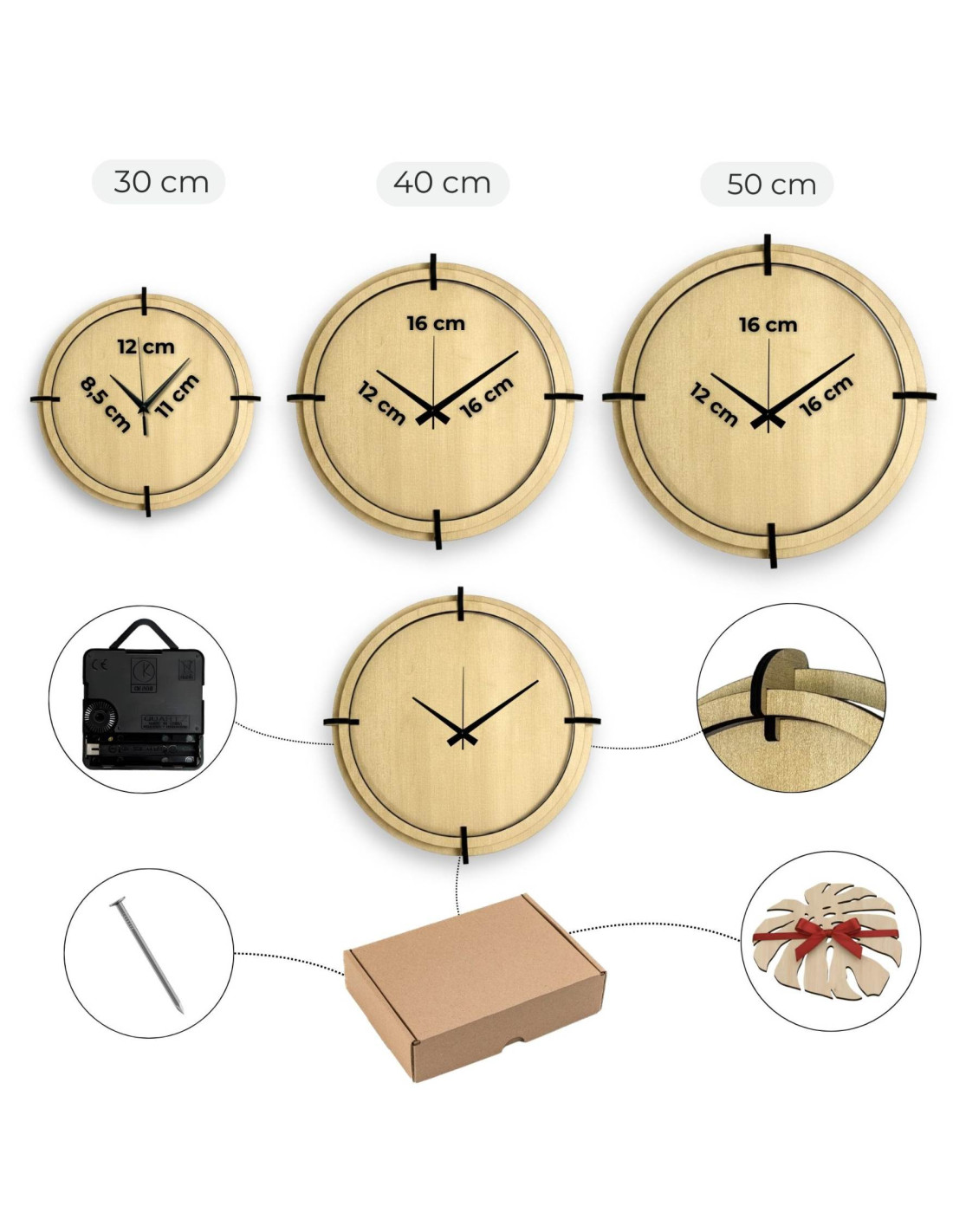 - Průměr hodin: na výběr 30 cm, 40 cm nebo 50 cm