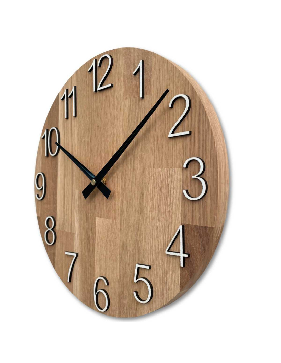 - Přírodní a elegantní design - Kombinace dubového dřeva a kovových ručiček vytváří moderní, ale zároveň nadčasový vzhled.