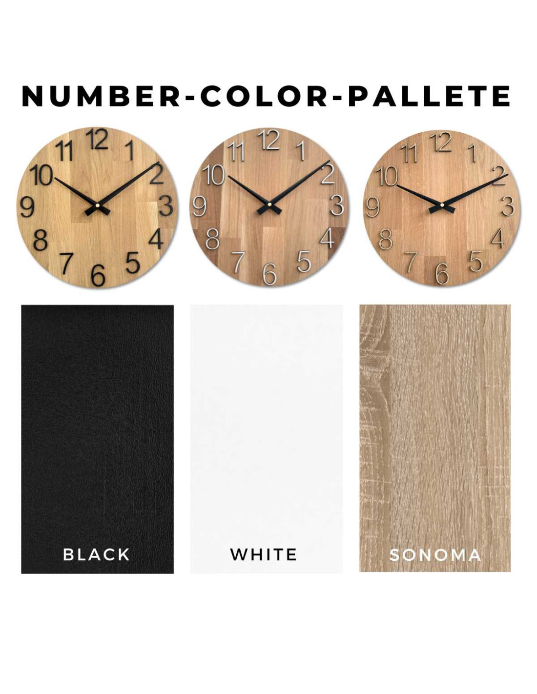 ➡️ Struktura: Každé hodiny jsou jedinečné, protože každé dřevo má jinou texturu, uspořádání vláken a odstín.
