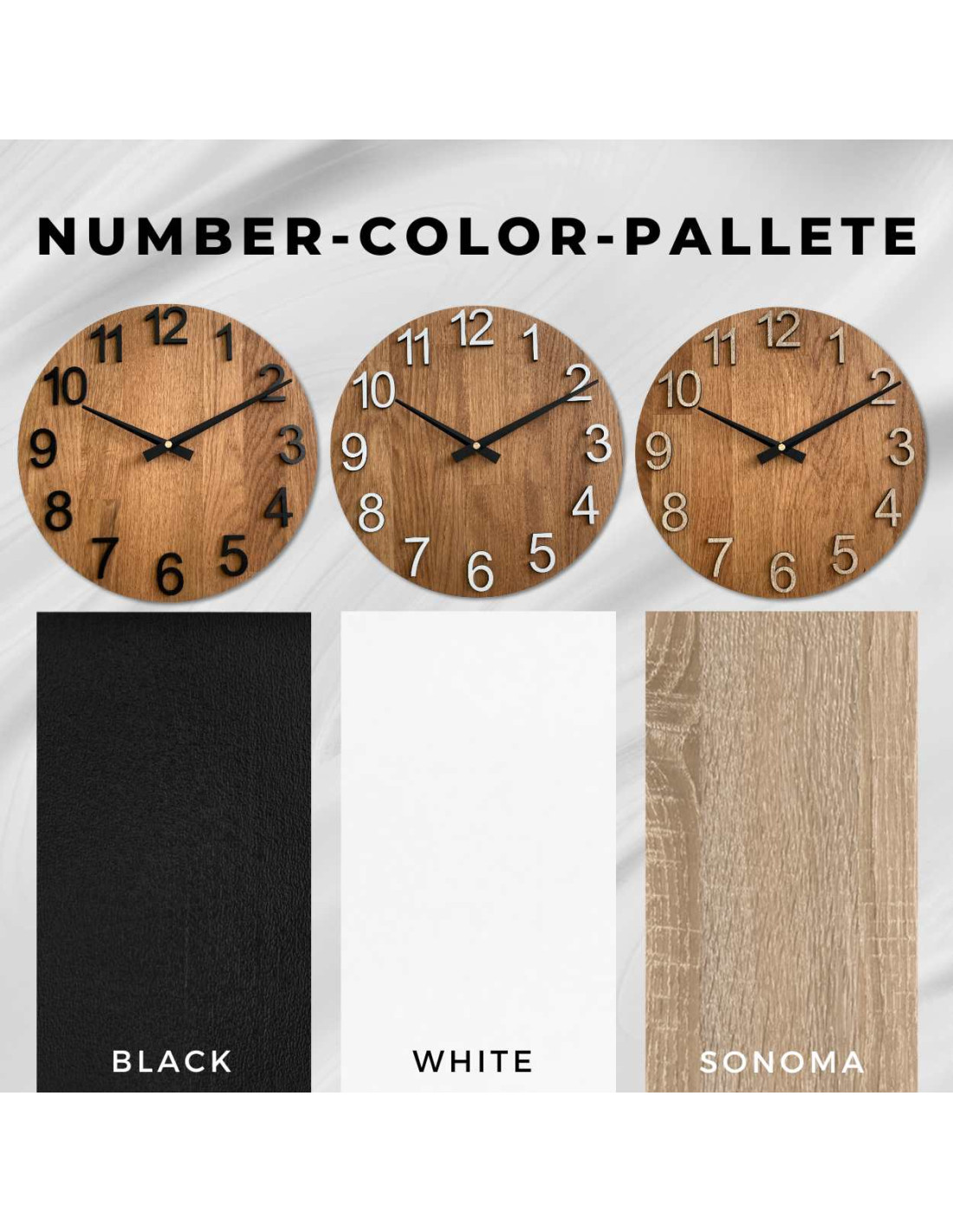 ➡️ Struktura: Každé hodiny jsou jedinečné, protože každé dřevo má jinou texturu, uspořádání vláken a odstín.