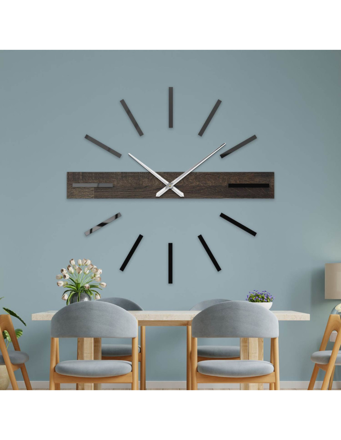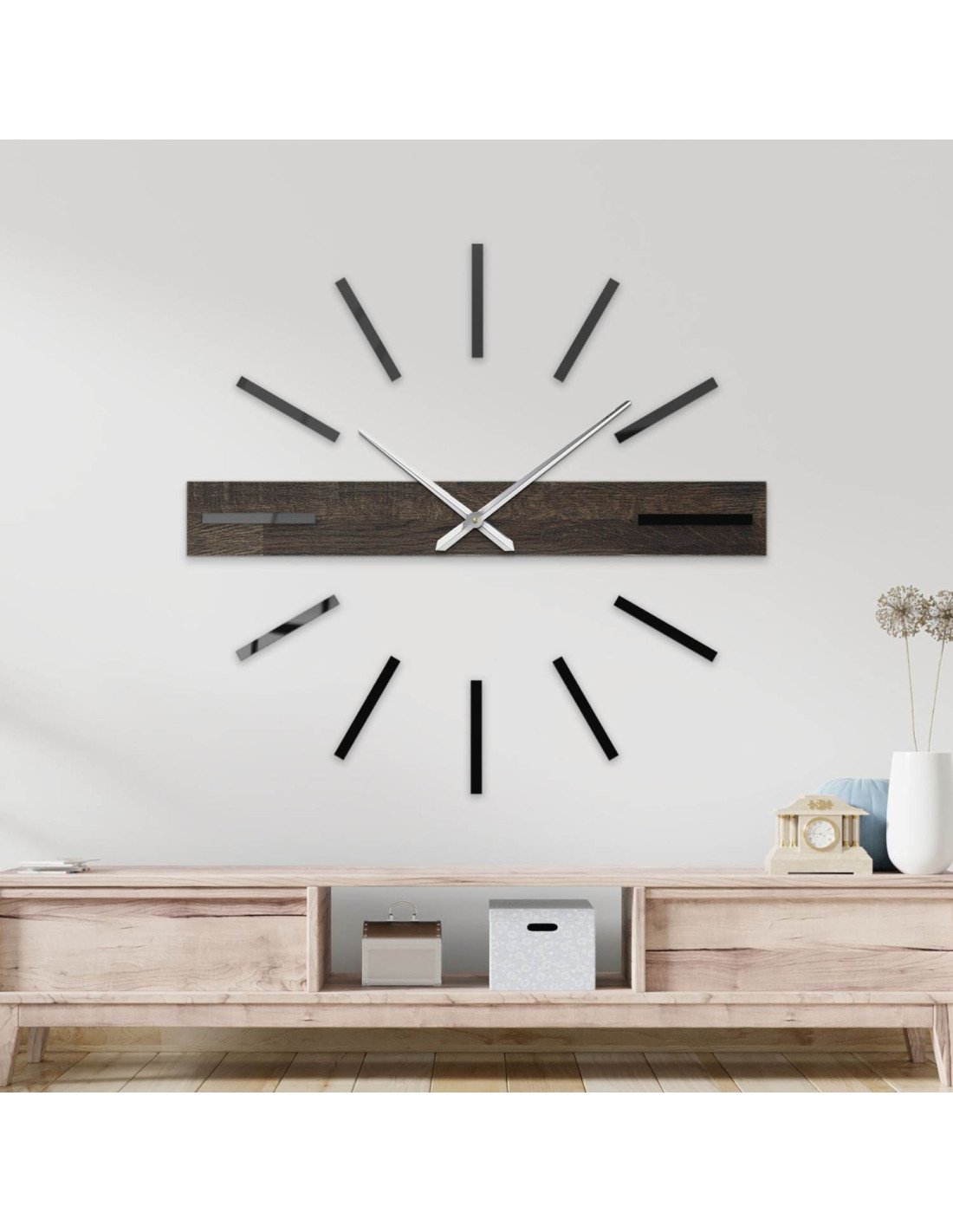 Přírodní a elegantní design – kombinace dubového dřeva, lesklých čísel z černého plexiskla a kovových ručiček vytváří moderní a nadčasový vzhled.