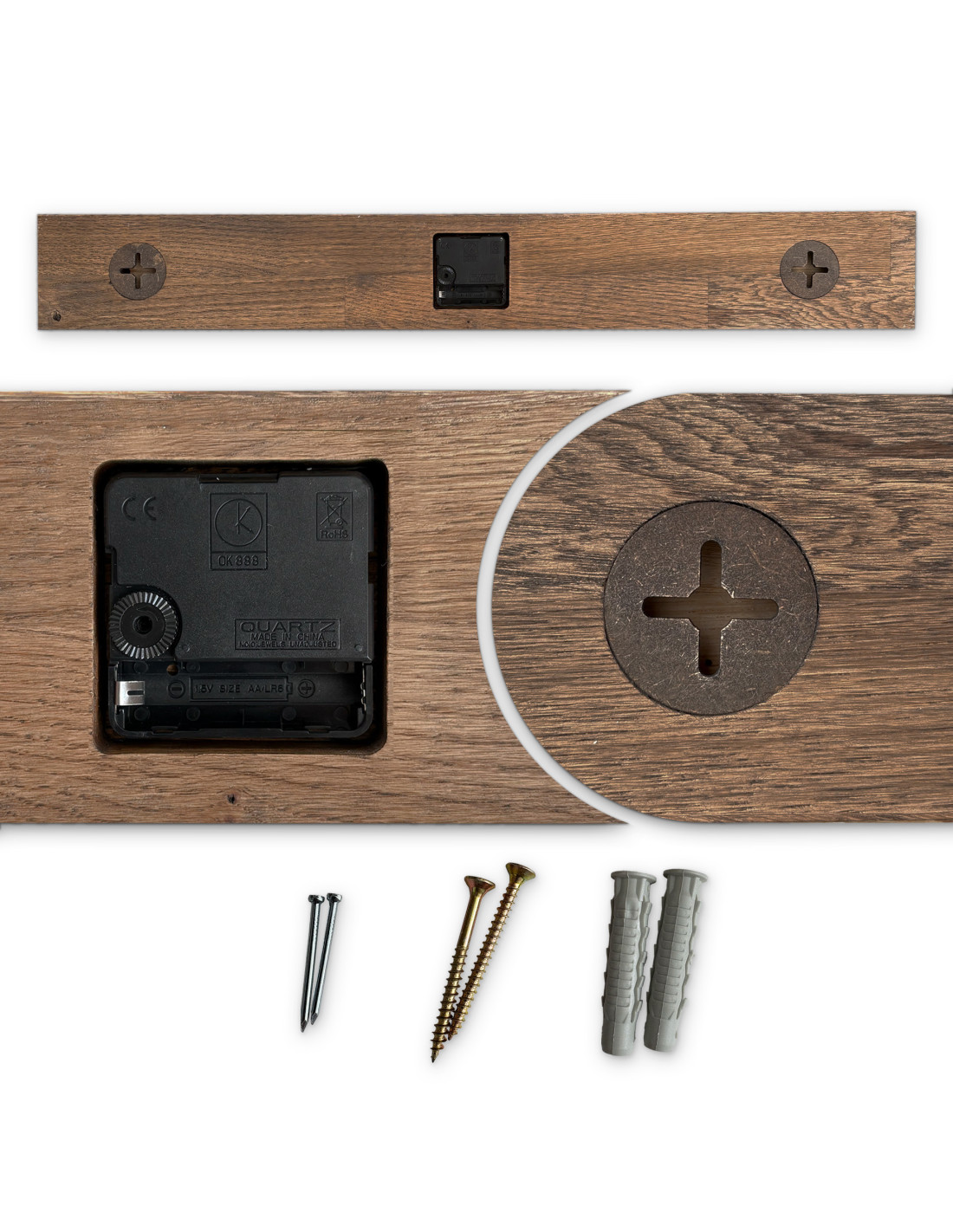 Každé hodiny vznikají z masivních dubových panelů , které přesně vyřezáváme do požadovaného tvaru a rozměru pomocí CNC technologie.
