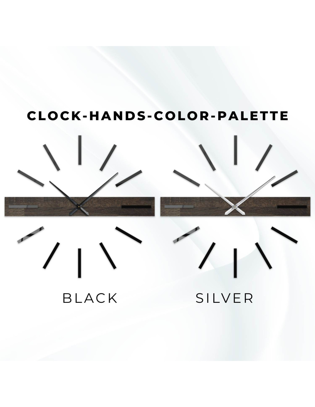 • 2. varianta - rozměr dřeva/hodin: 105 × 12,5 cm (41,3 × 4,9 palce), hmotnost 1,7 kg (3,75 lb), průměr hodin 105 cm (41,3")