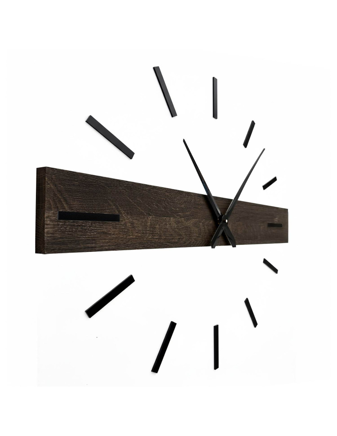 Dřevěné nástěnné hodiny z masivního dubu s výrazným číselným ciferníkem.