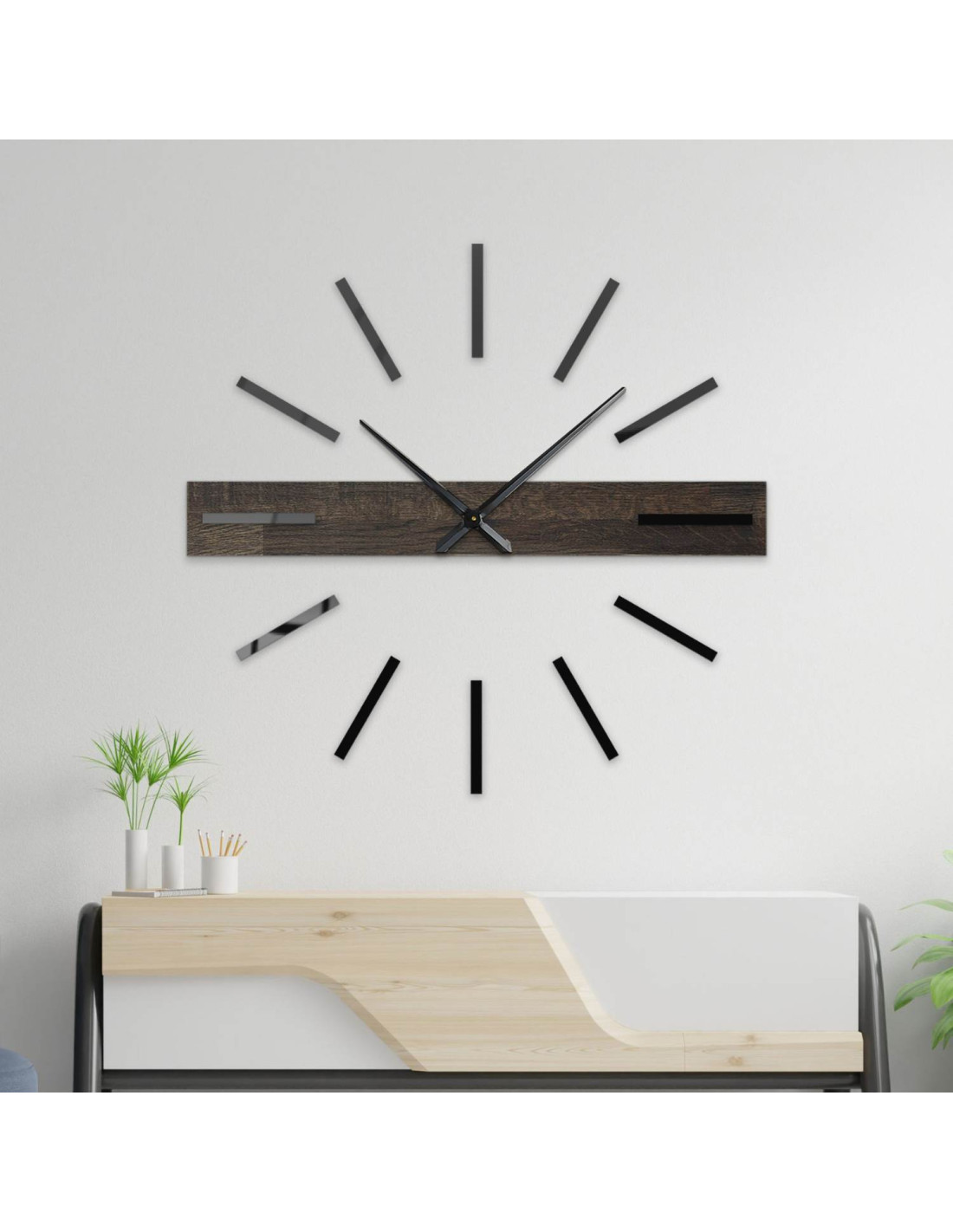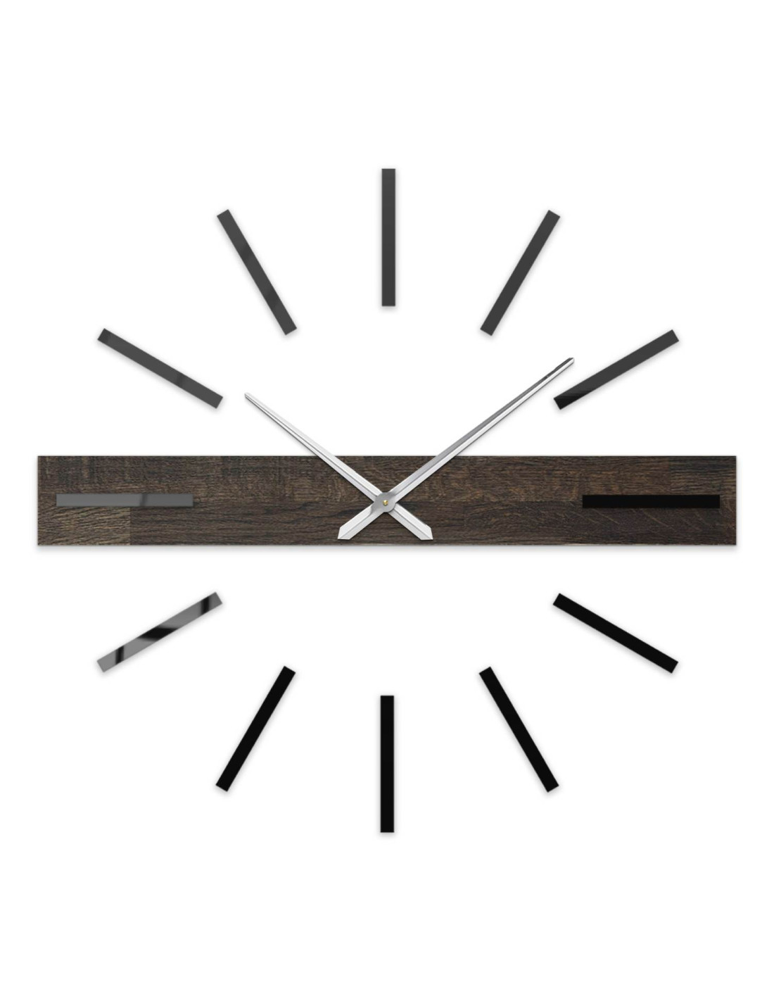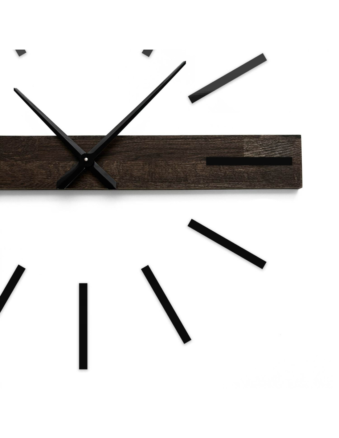 Přírodní a elegantní design – kombinace dubového dřeva, lesklých čísel z černého plexiskla a kovových ručiček vytváří moderní a nadčasový vzhled.