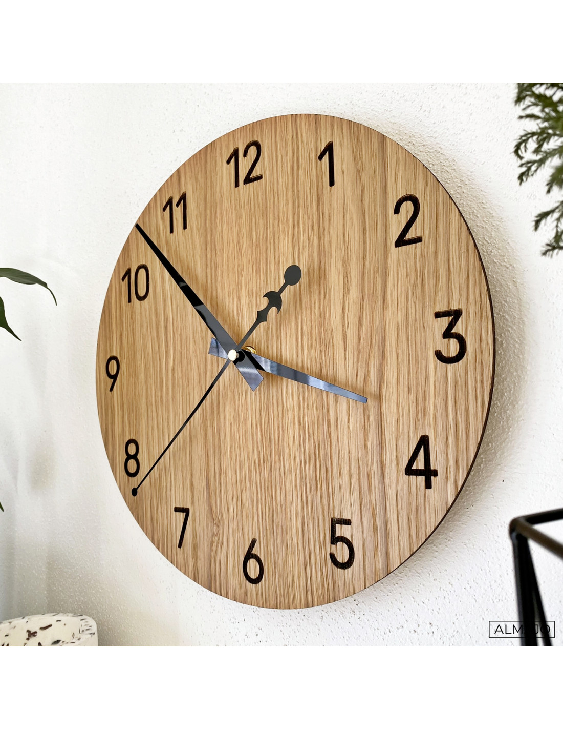 Přírodní krása dubového dřeva ve spojení s elegantními černými ručičkami vytváří decentní a moderní vzhled. Hodiny dokonale ladí s rustikálními i minimalistickými interiéry a přinášejí do prostoru harmonický vizuální prvek.