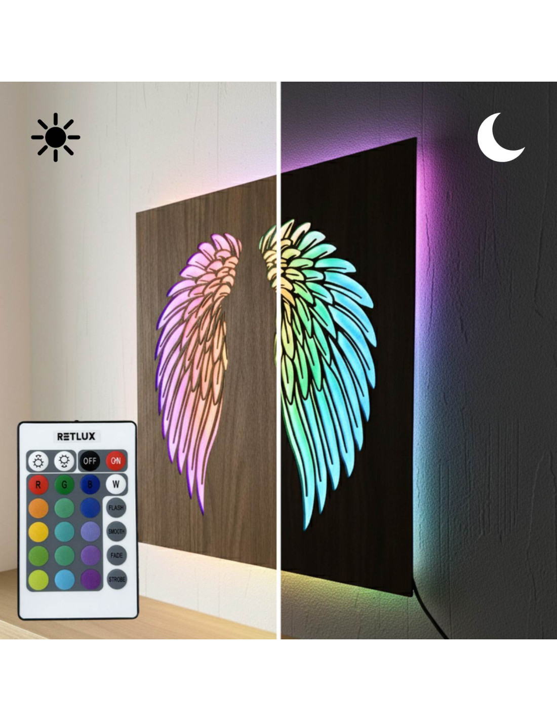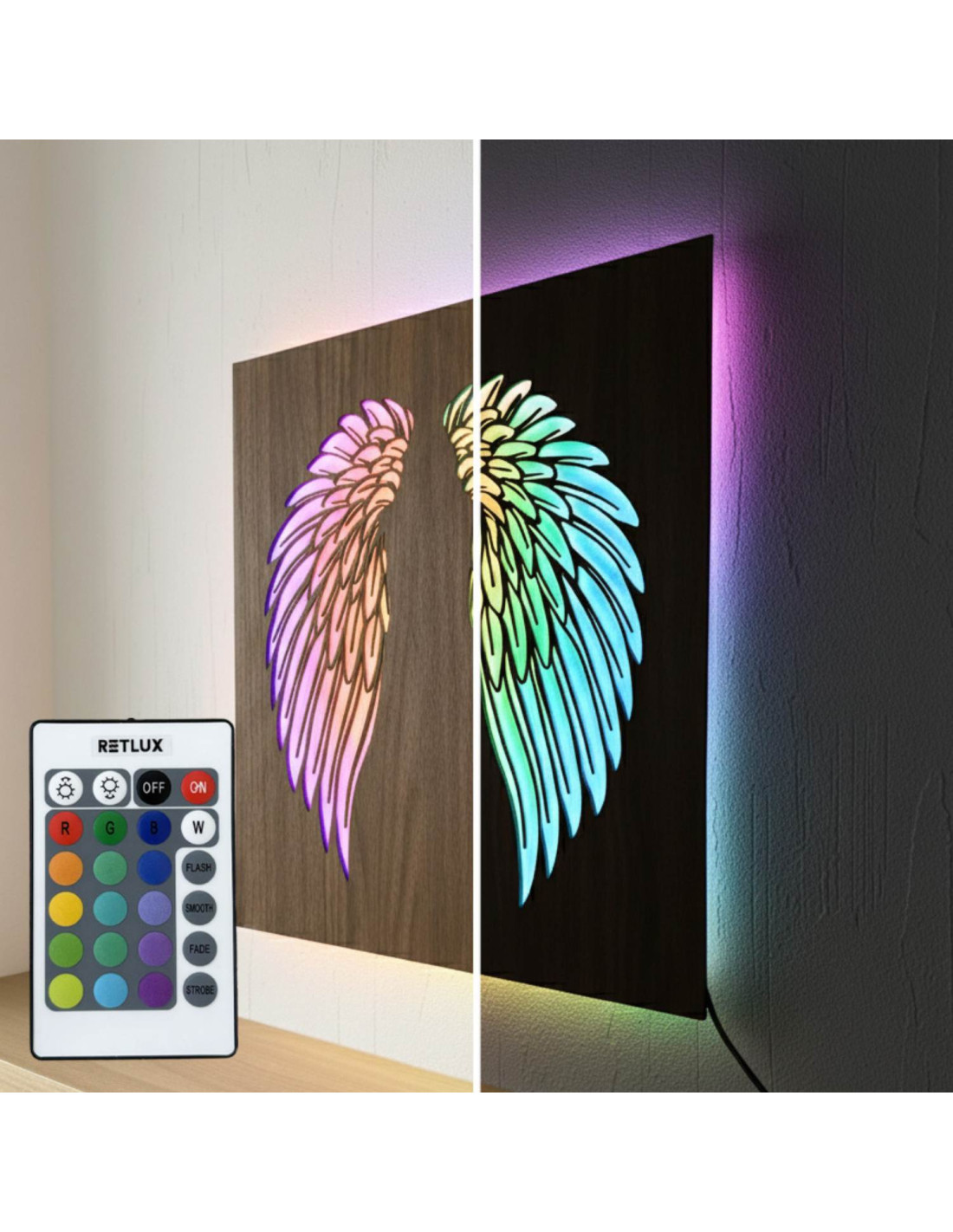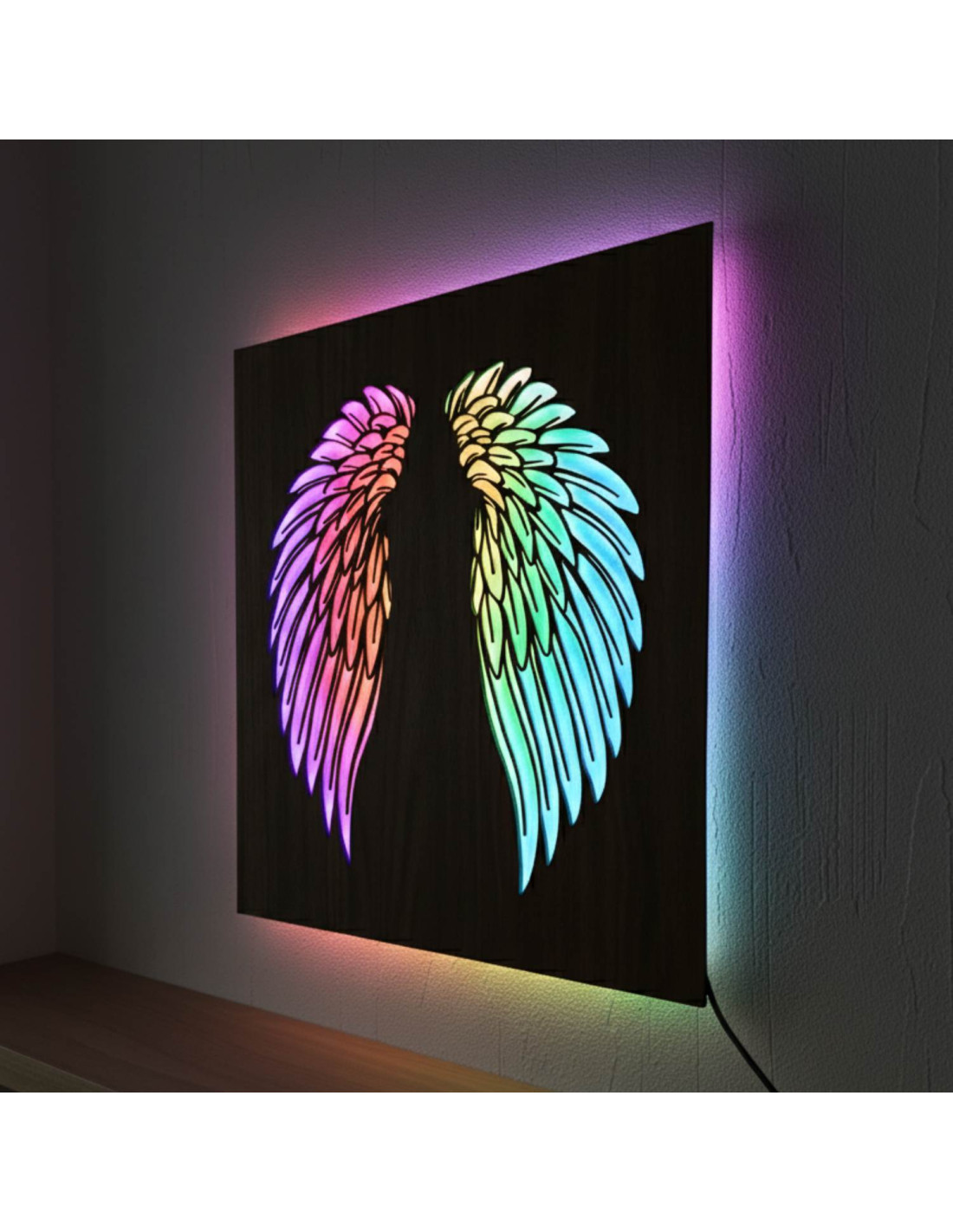 LED dřevěný obraz – andělská křídla s moderním RGB osvětlením