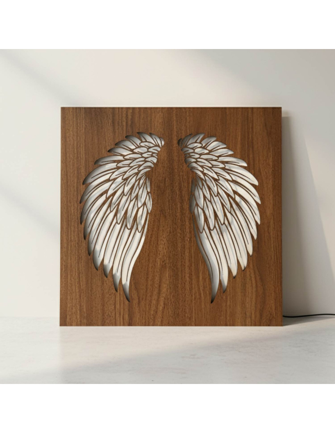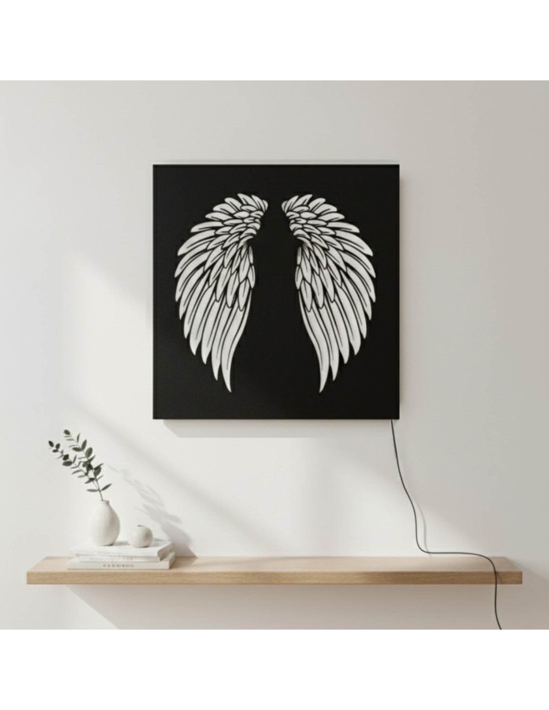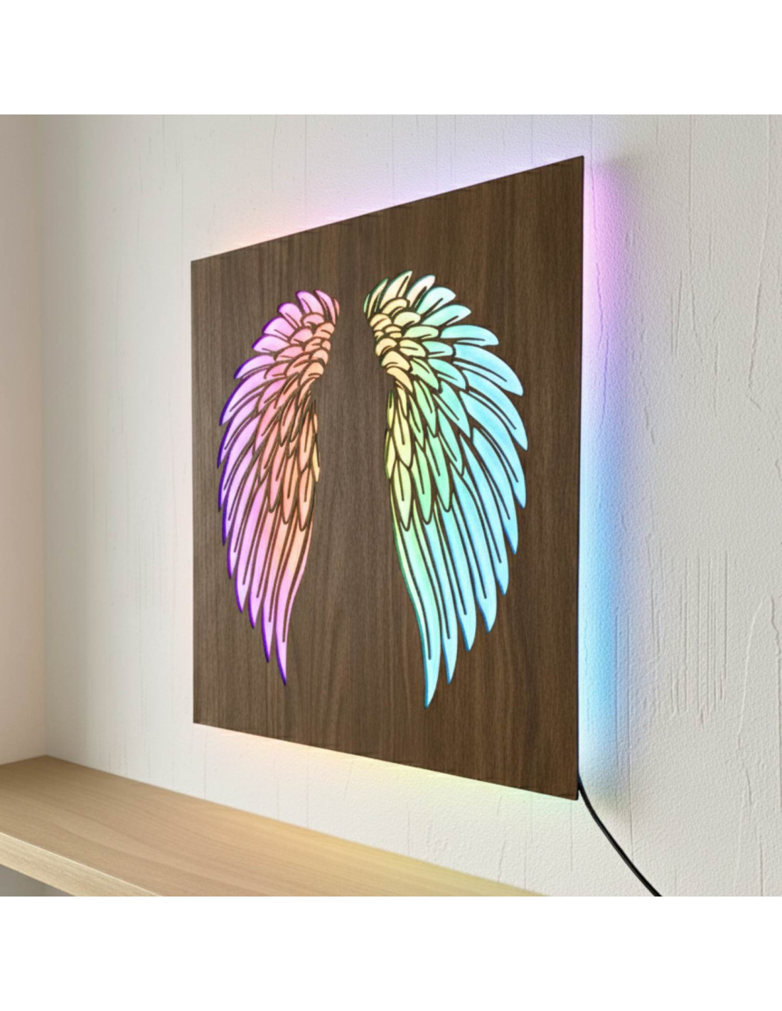 LED dřevěný obraz – andělská křídla s moderním RGB osvětlením