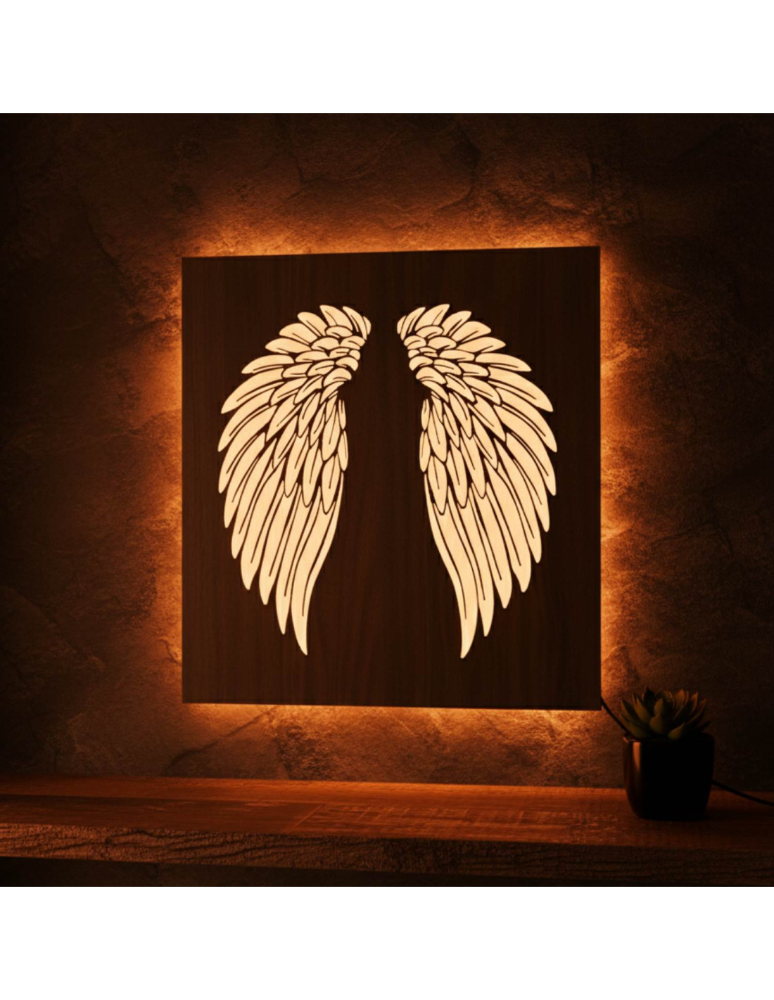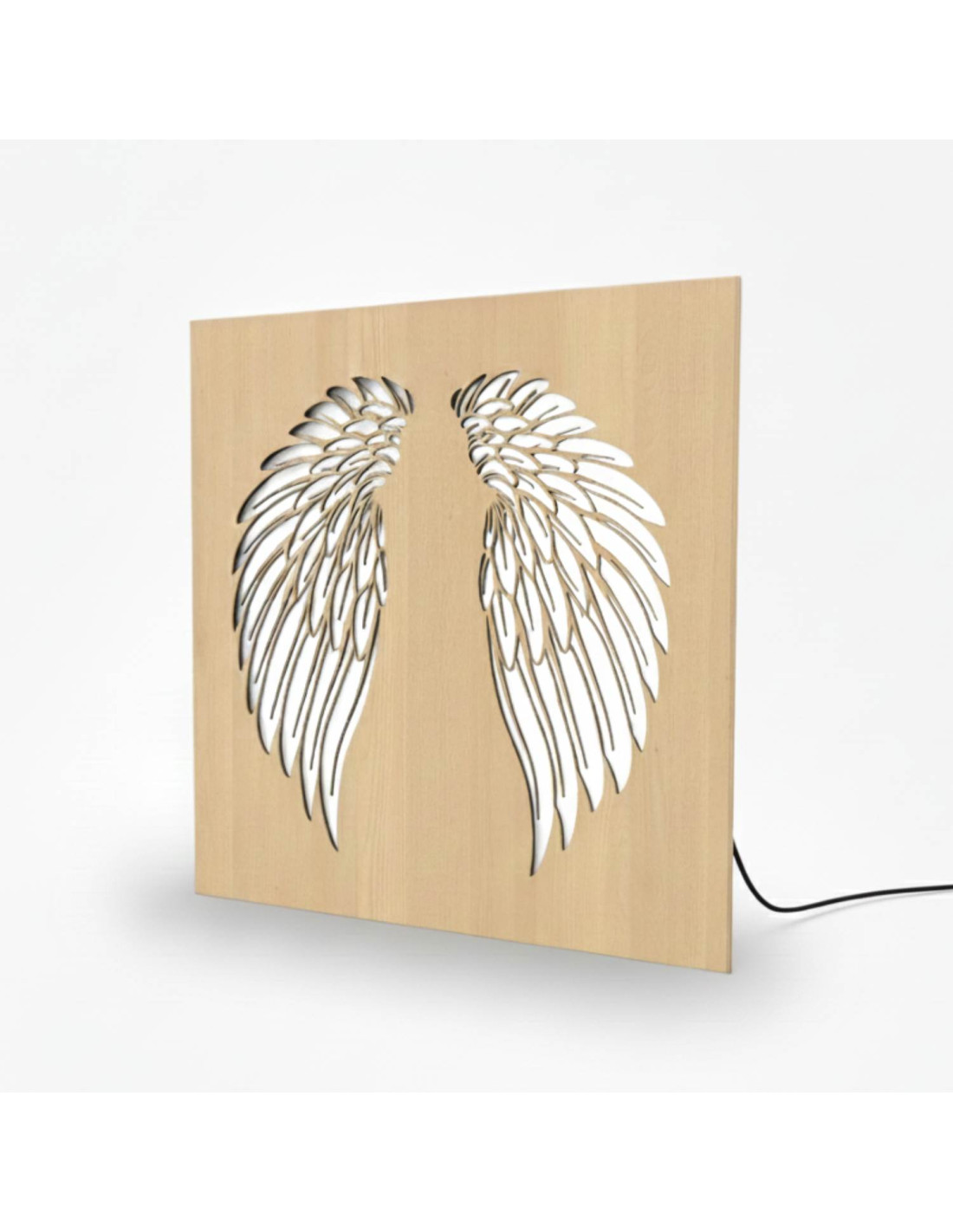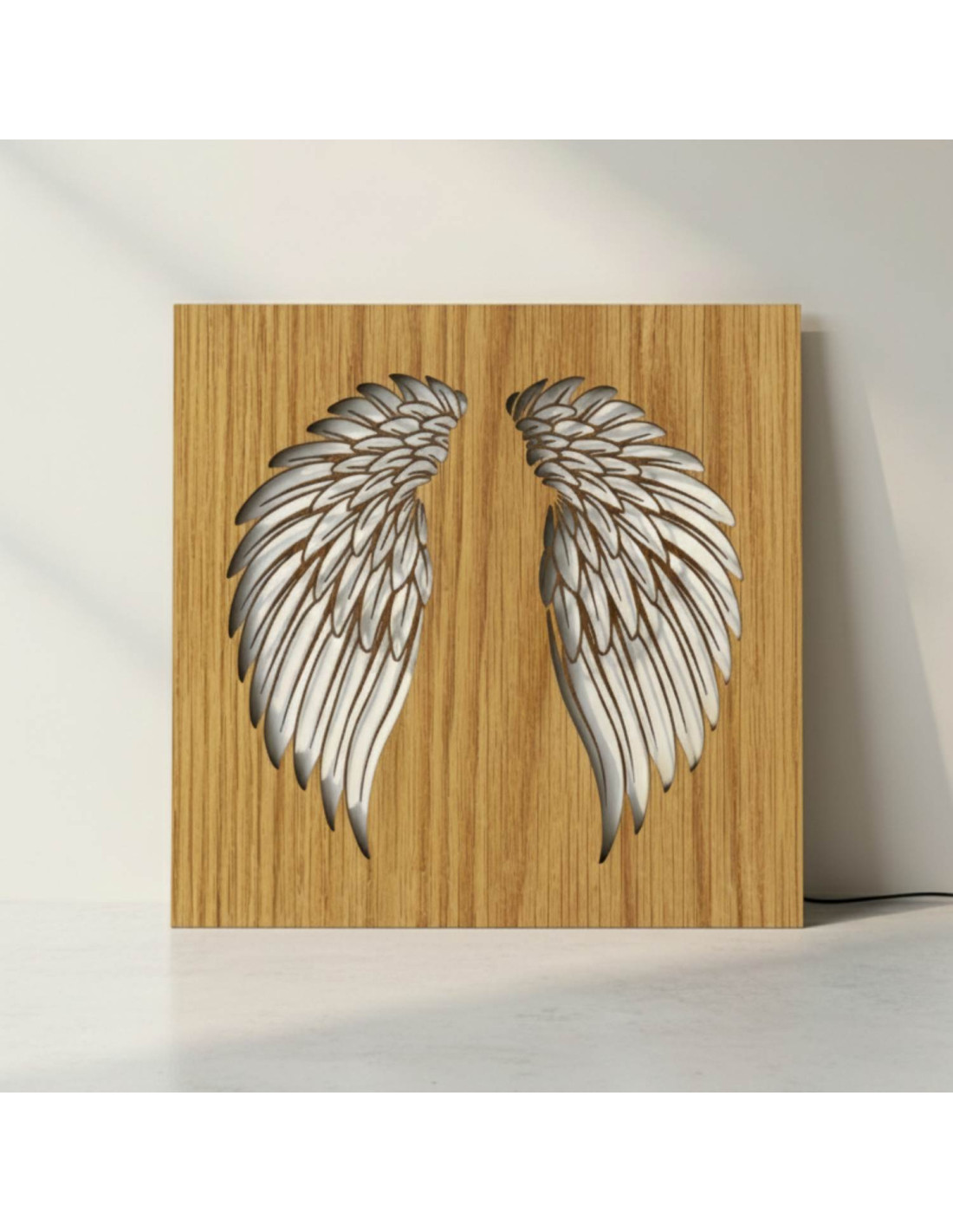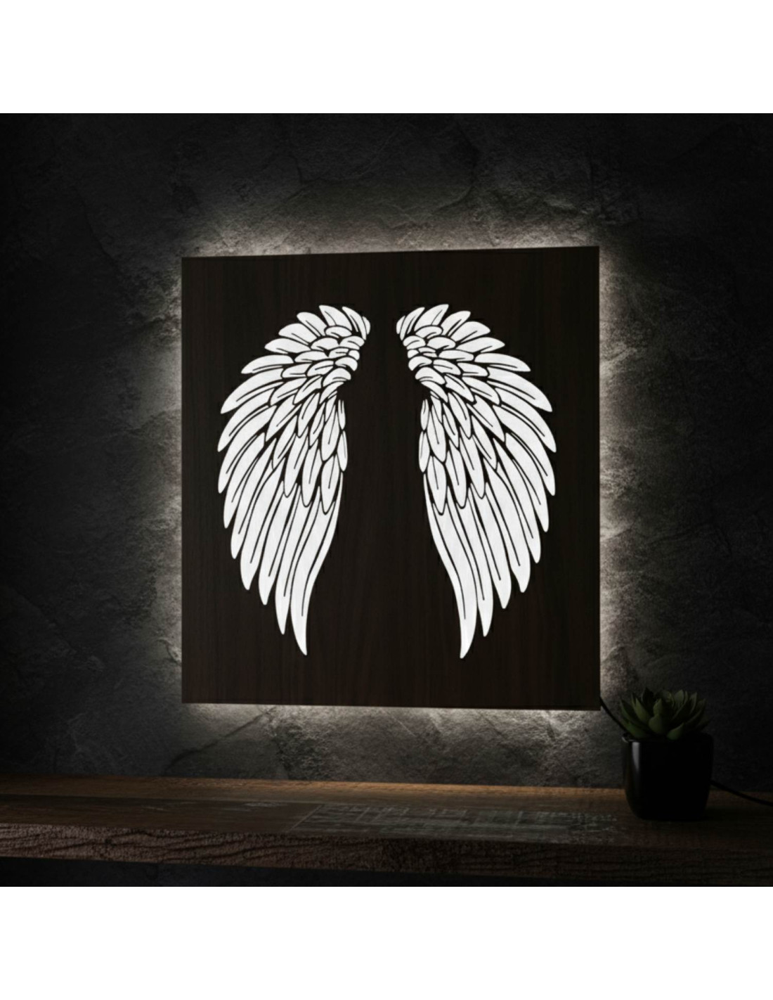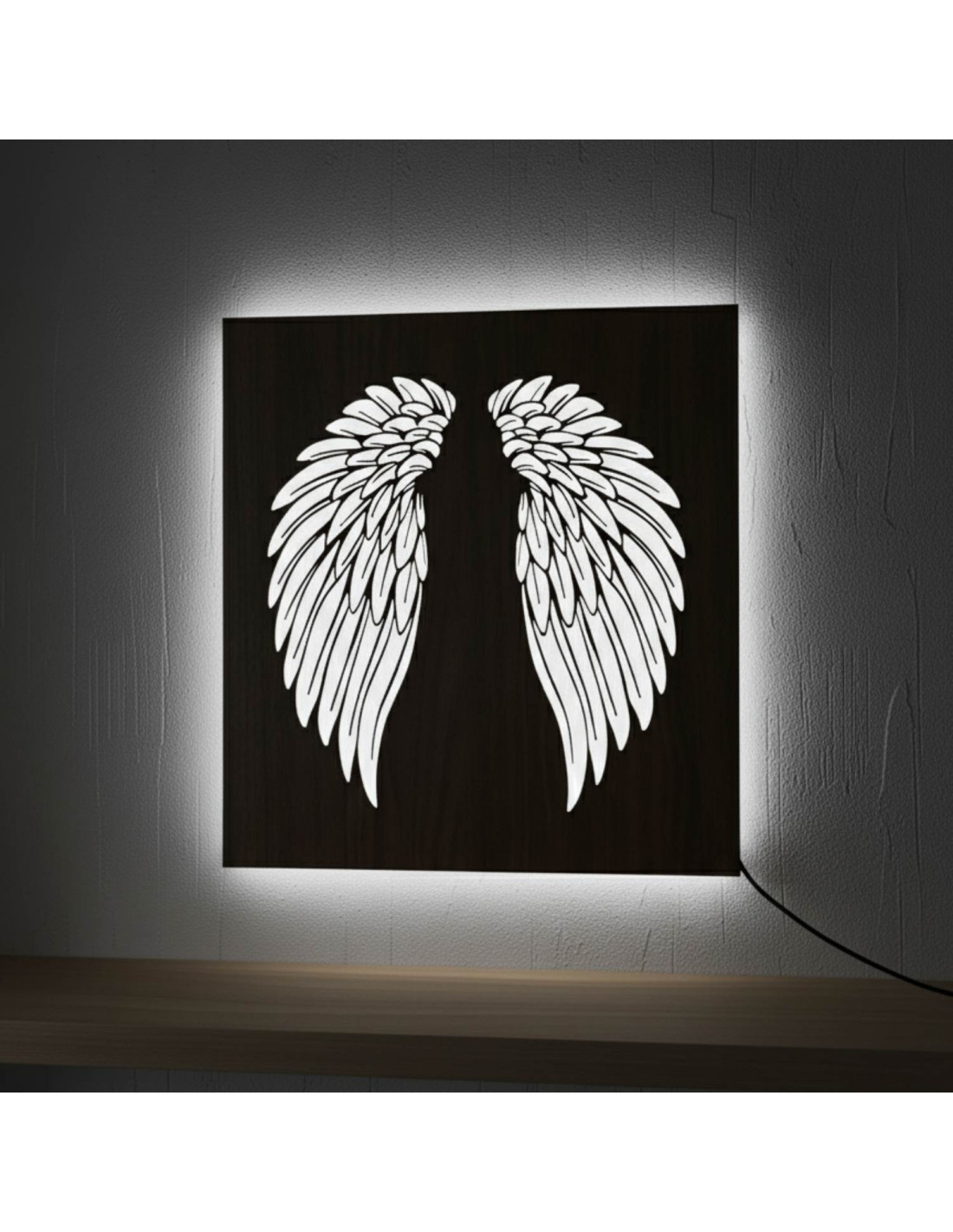 Dřevěný podsvícený LED obraz – Andělská křídla na zeď - MULO
