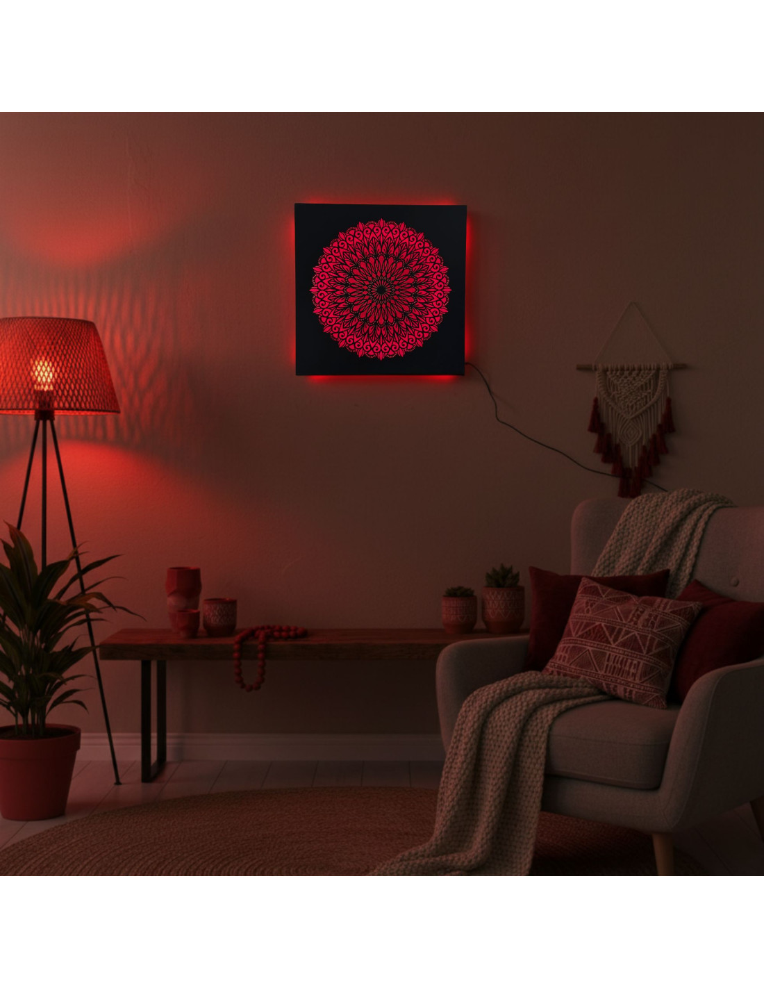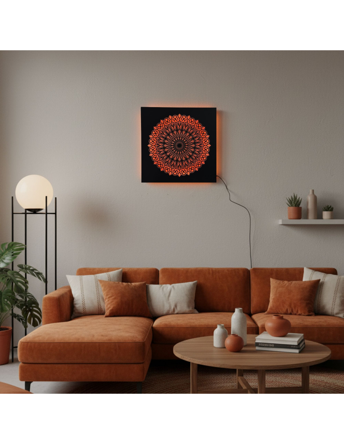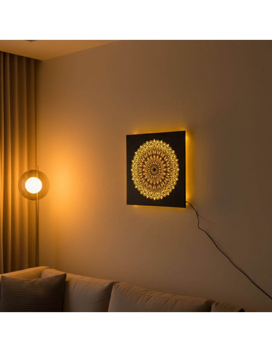 Originální dřevěný světelný obraz - mandala je elegantní dekorace, která zútulní váš domov i pracovní prostor. Ideální do obývacího pokoje, ložnice či kanceláře .