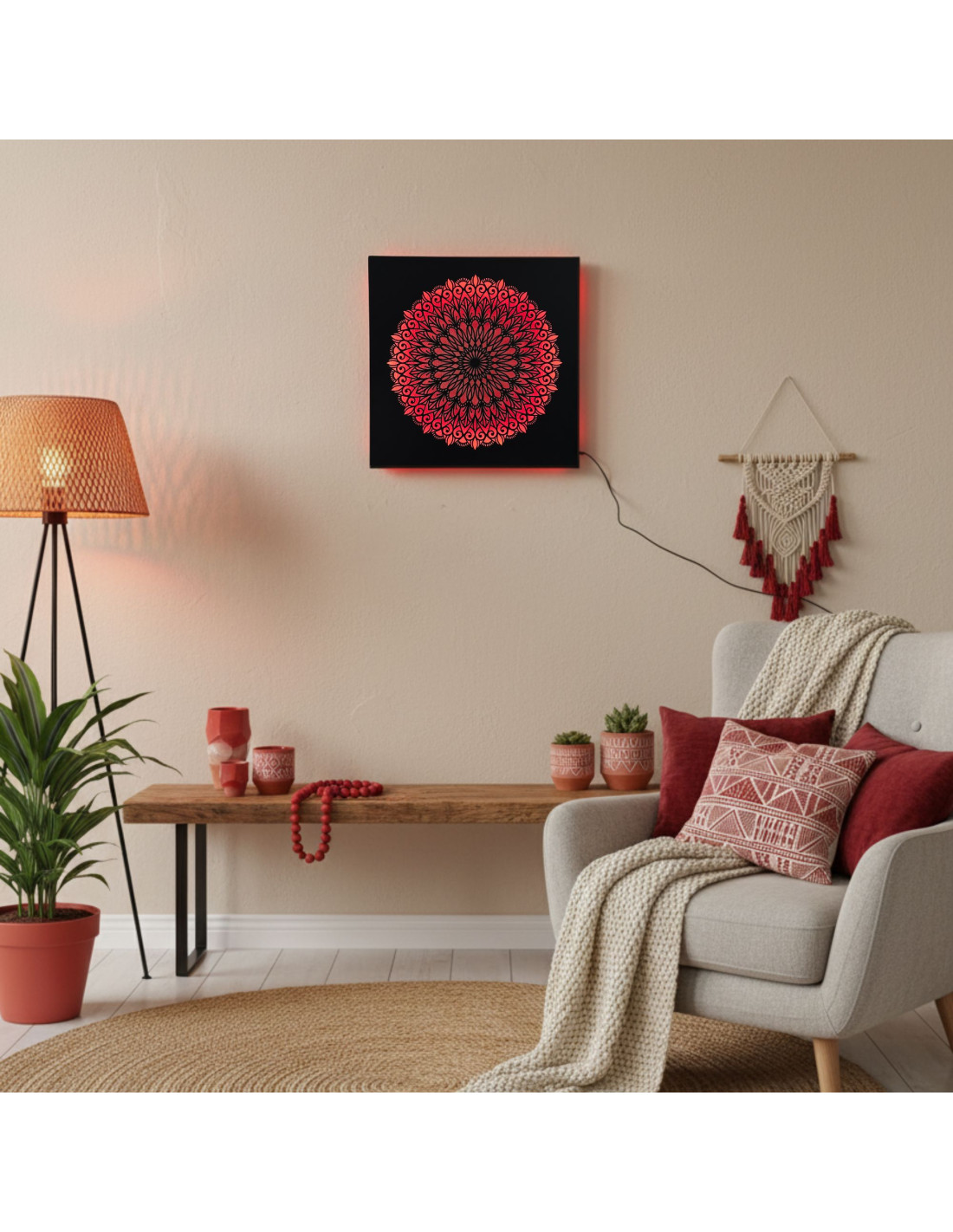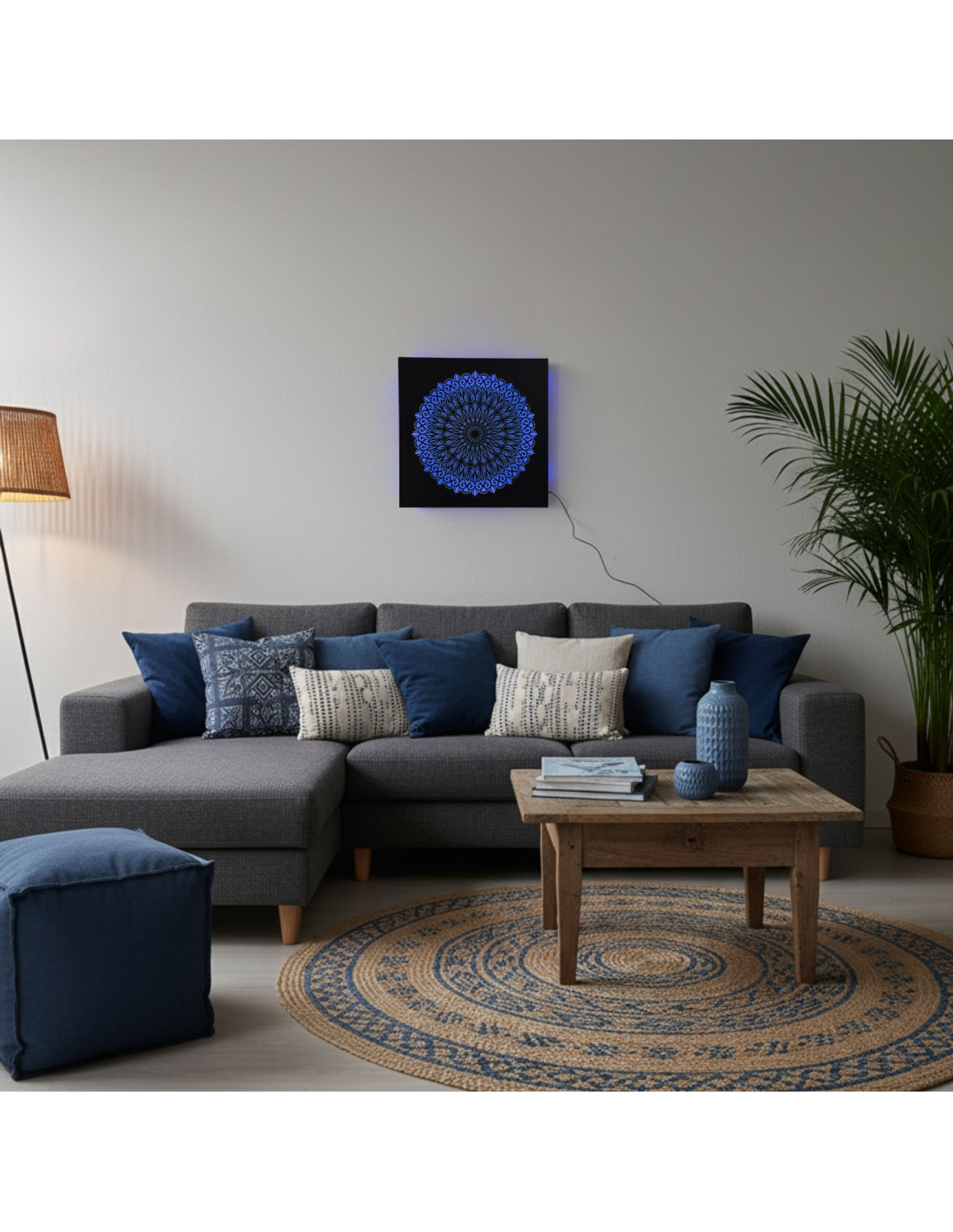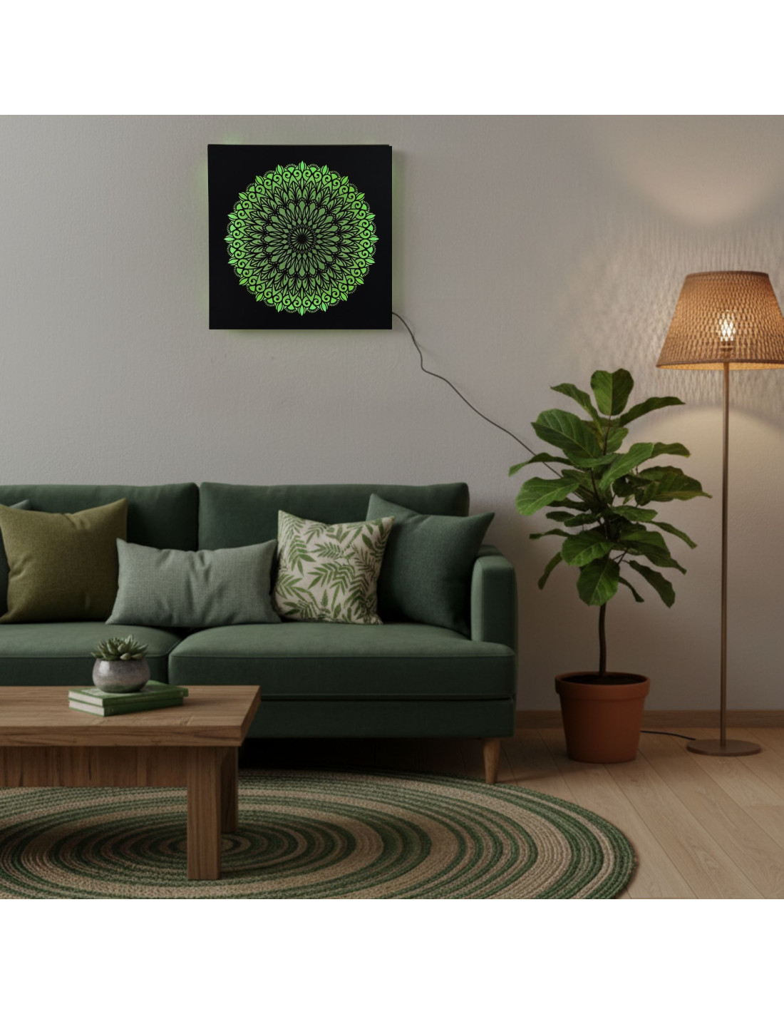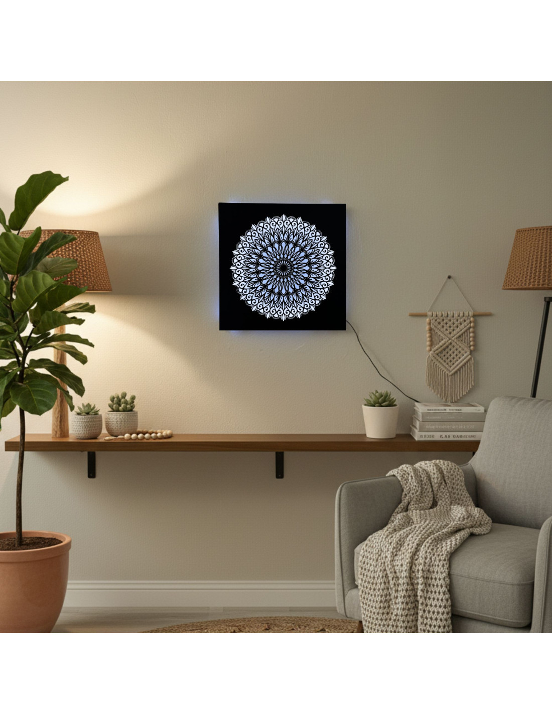 Originální dřevěný světelný obraz - mandala je elegantní dekorace, která zútulní váš domov i pracovní prostor. Ideální do obývacího pokoje, ložnice či kanceláře .