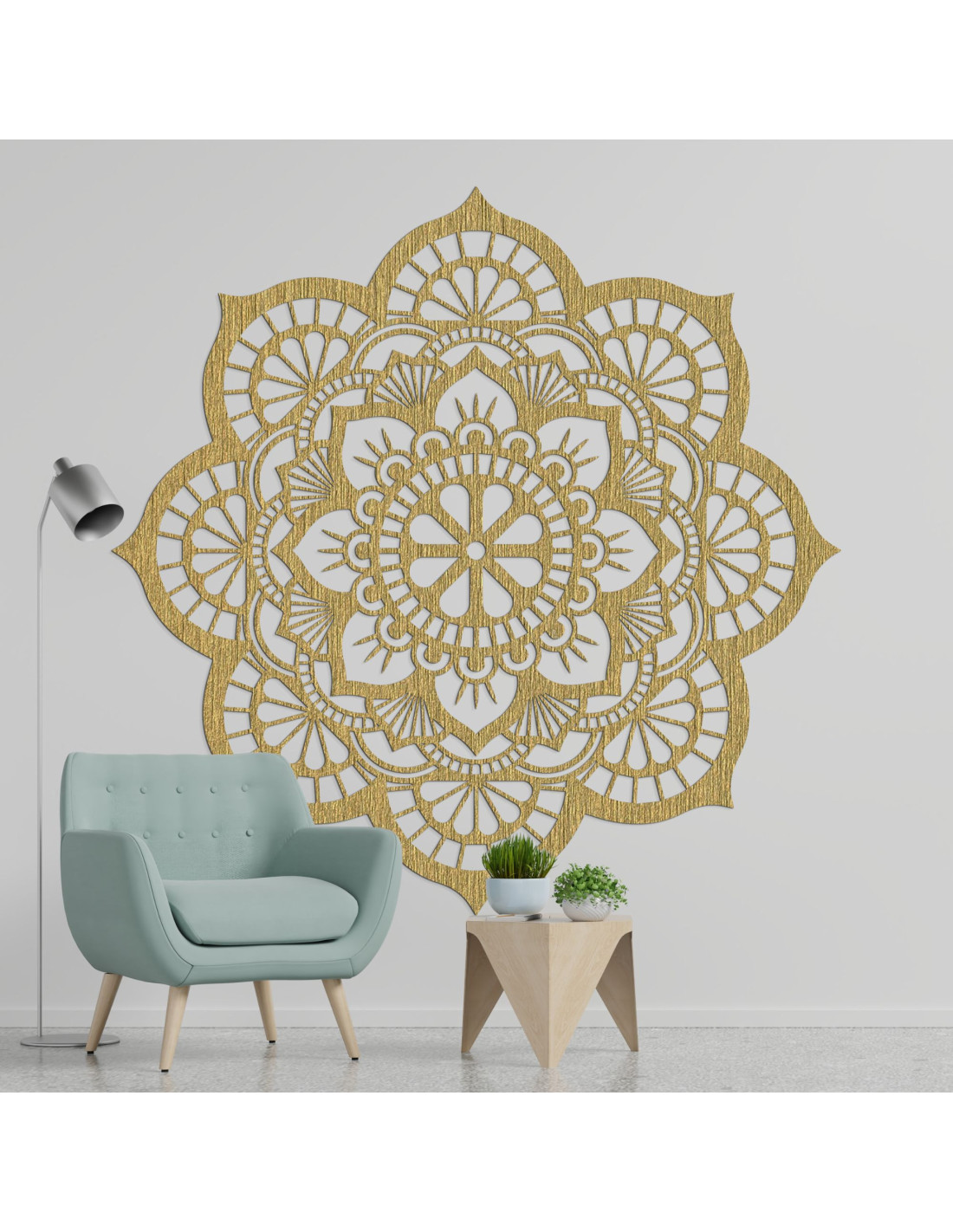 Dřevěná dekorace na zeď se symbolikou mandaly lotosový květ - MYSTICA