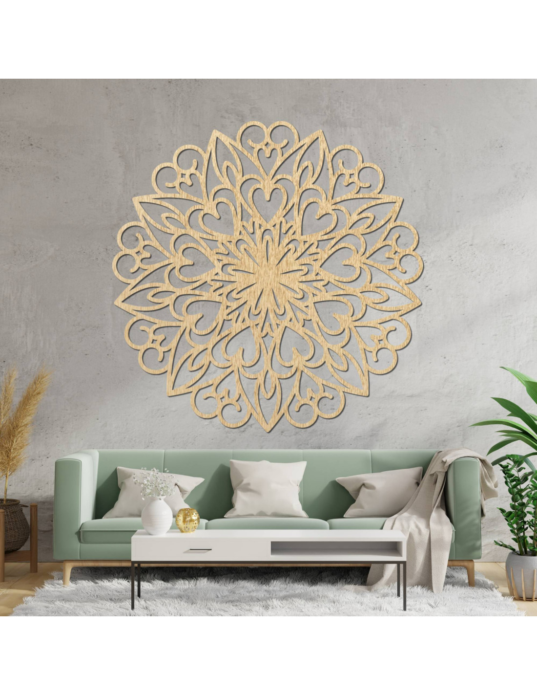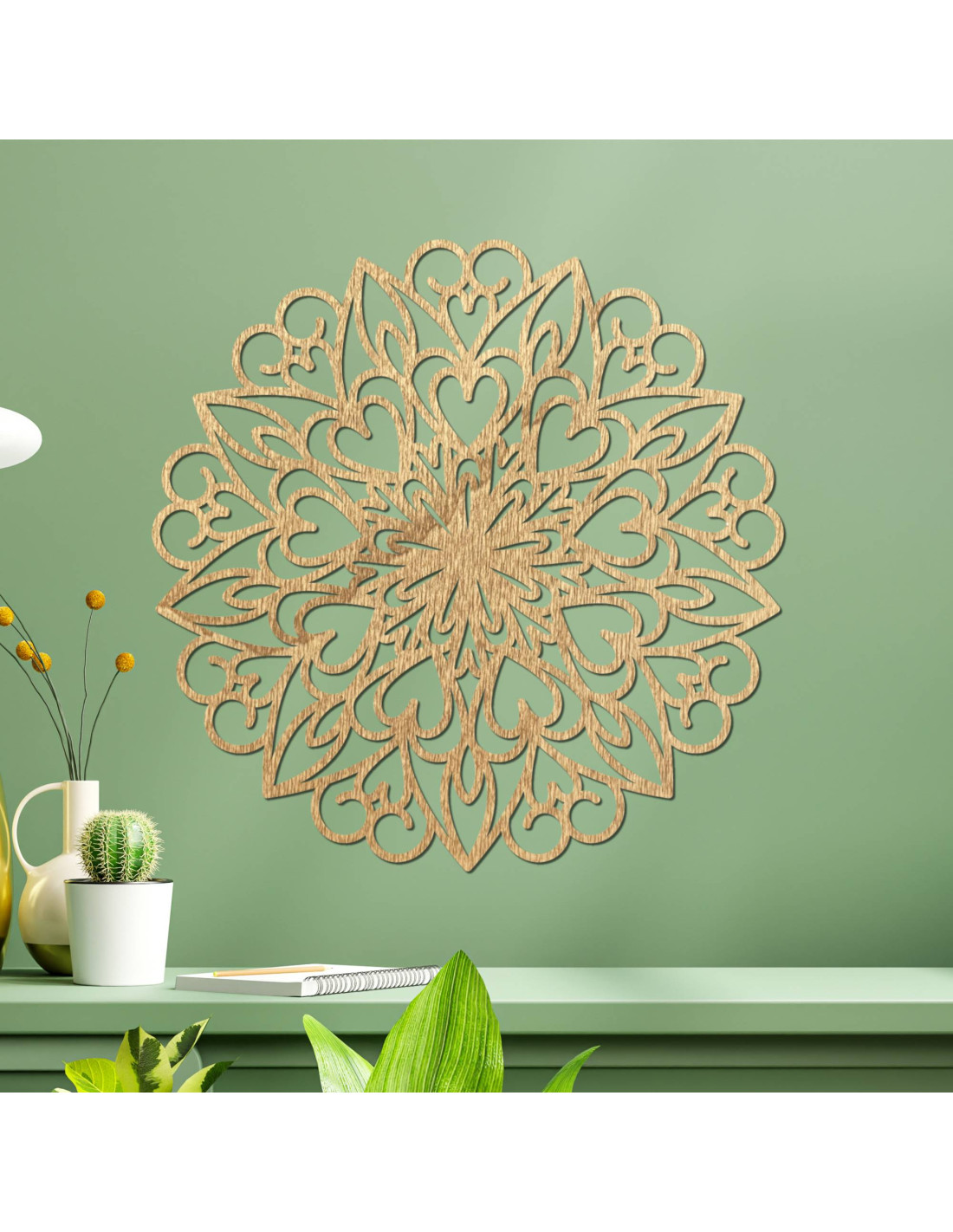 Mandala je symbol lásky a harmonie v dřevěném provedení.