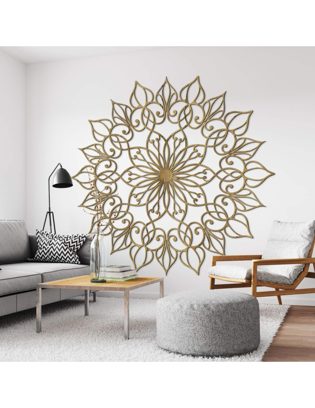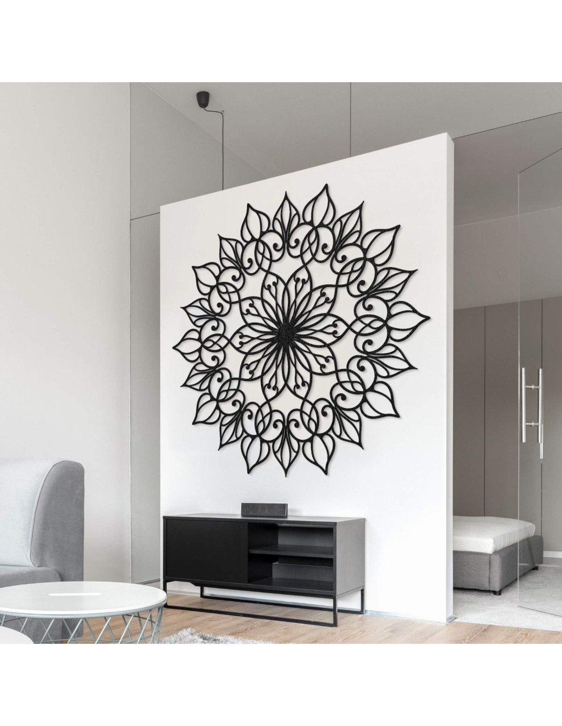 Mandala působí harmonicky a vytváří klidnou, vyváženou atmosféru , ideální pro moderní i minimalistický prostor.