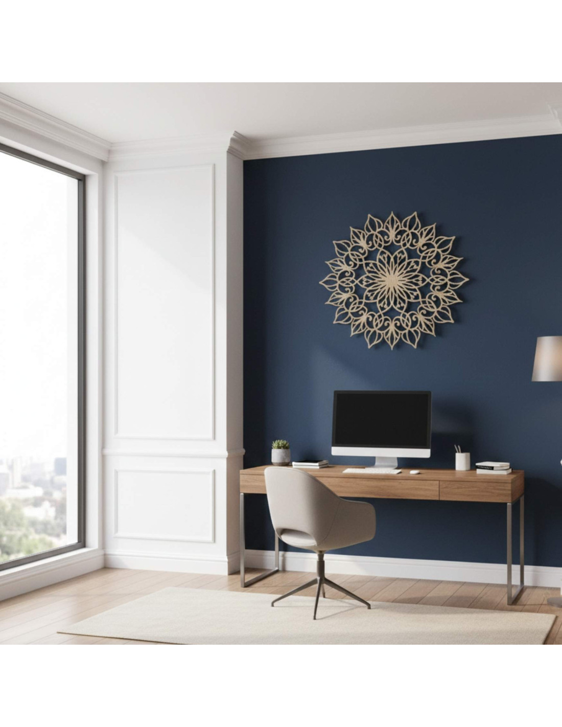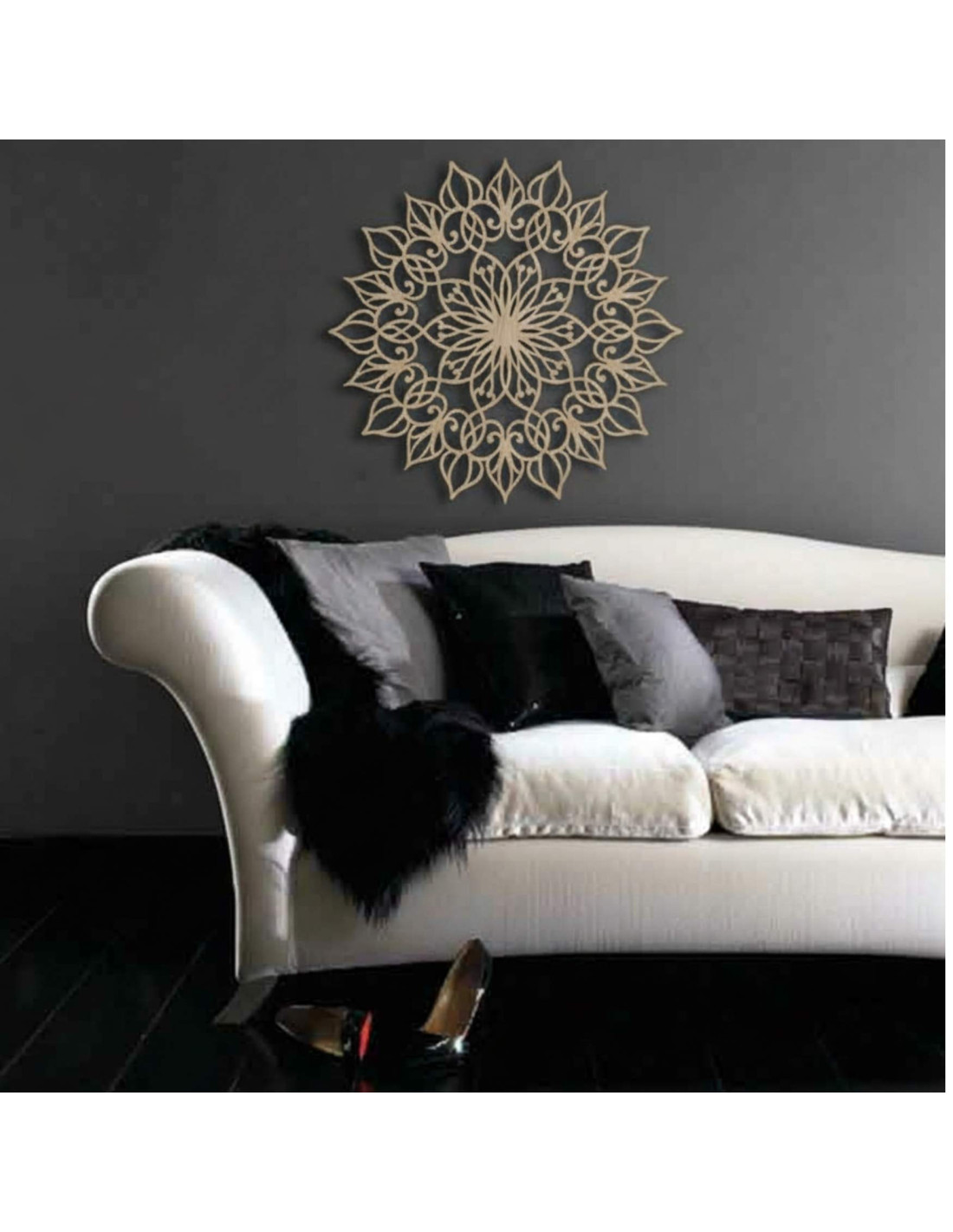 Mandala působí harmonicky a vytváří klidnou, vyváženou atmosféru , ideální pro moderní i minimalistický prostor.
