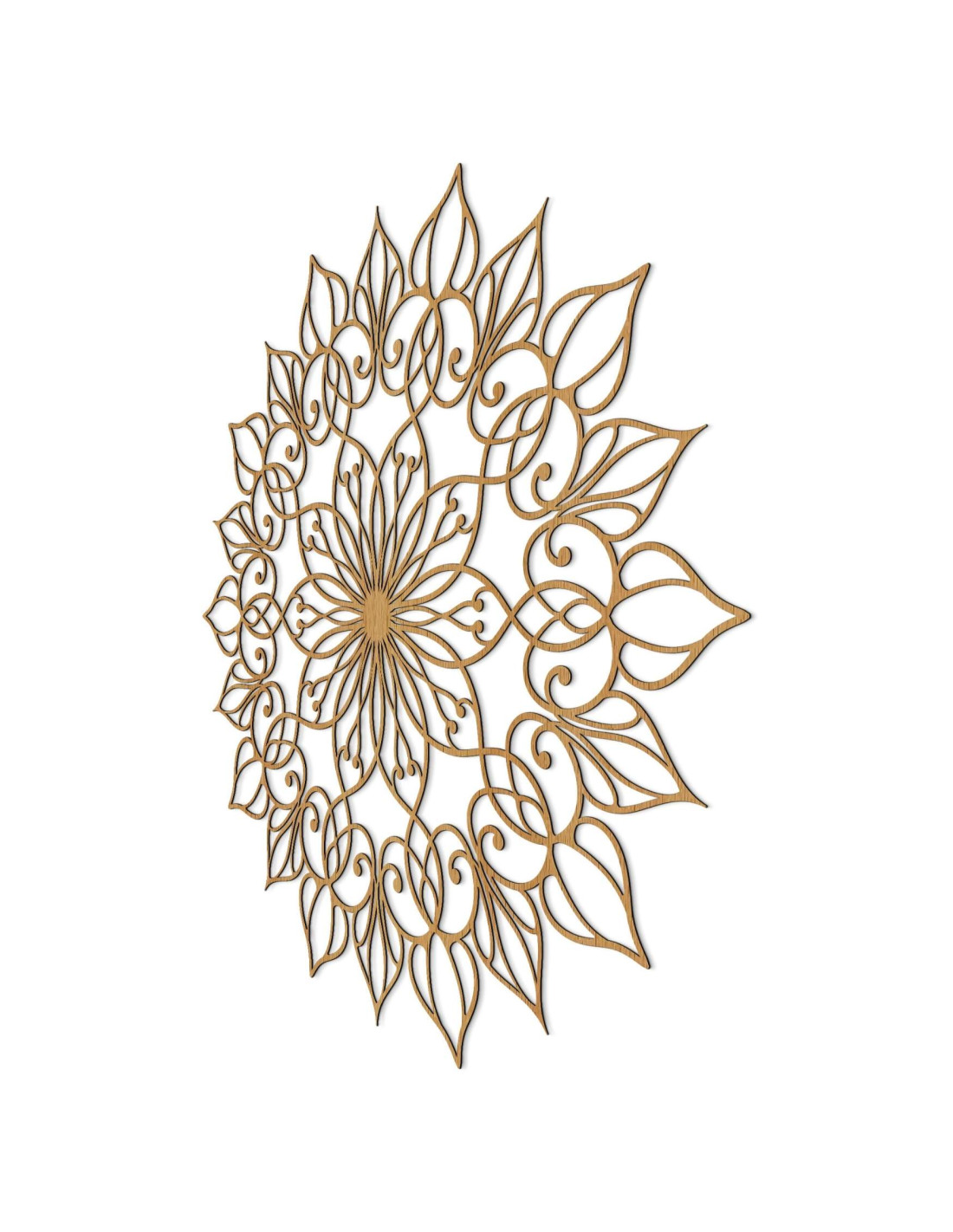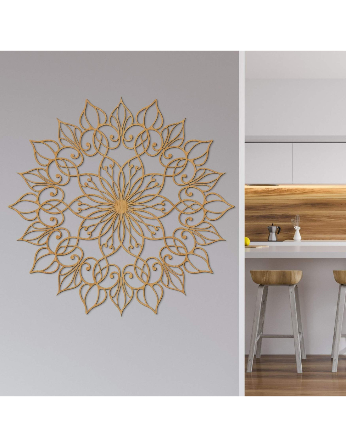 Tato jedinečná nástěnná dekorace zobrazuje mandalu Květu života s precizně vyřezávaným detailním vzorem. Zlatý odstín dodává prostoru luxusní, teplý a harmonický vzhled , díky čemuž se stává výrazným designovým prvkem každého interiéru.