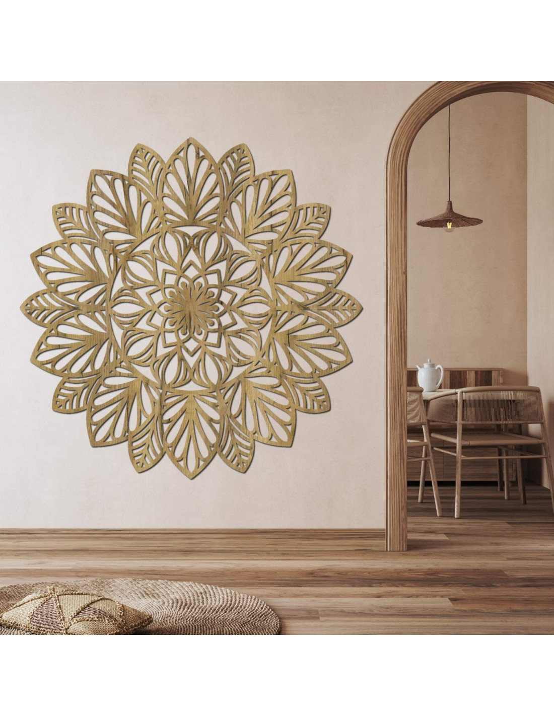 Objevte krásu mandaly Květ života , symbolu harmonie, růstu a rovnováhy . Precizně vyrobená z kvalitních materiálů, zkrášlí váš domov a přinese do něj klid a pozitivní energii . Objednejte si ji ještě dnes a oživte svůj interiér stylem!