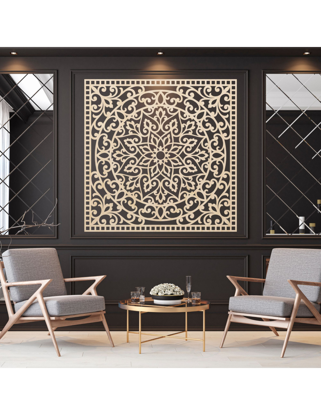 Luxusní mandala z kvalitního dřeva , navržená tak, aby ohromila svým detailním zpracováním a jedinečným designem .