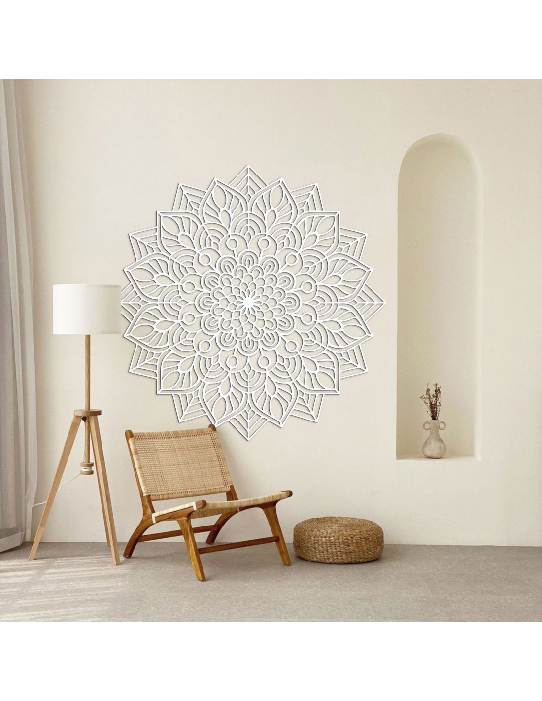 Tato elegantní dřevěná mandala na zeď je dokonalým spojením precizního řemesla a harmonického designu. Její jemně propracovaná geometrická struktura působí jako vizuální poezie – vrstvy tvarů, které se prolínají do jednoho vyváženého celku.