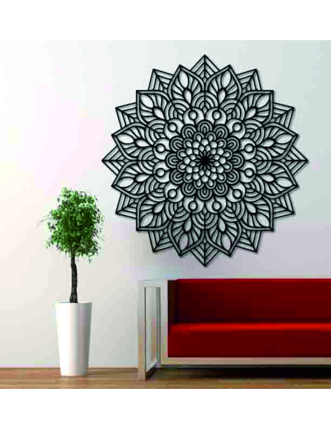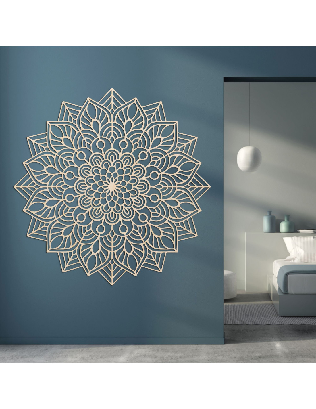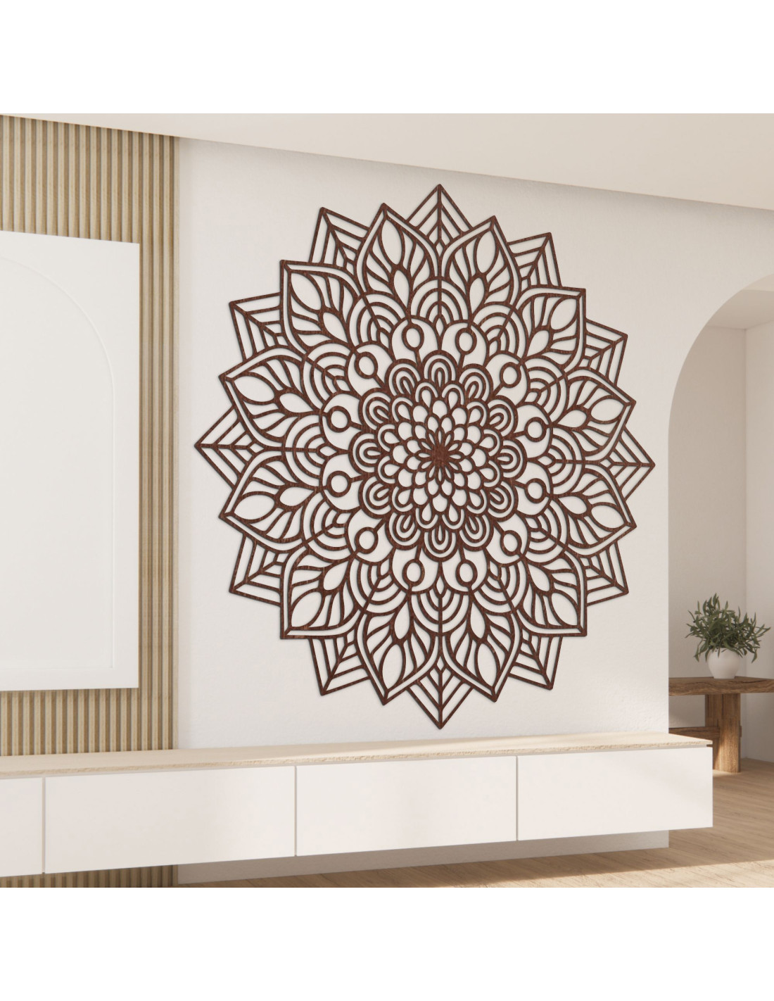 Dřevěná mandala na zeď vnáší do interiéru eleganci, preciznost a harmonii .