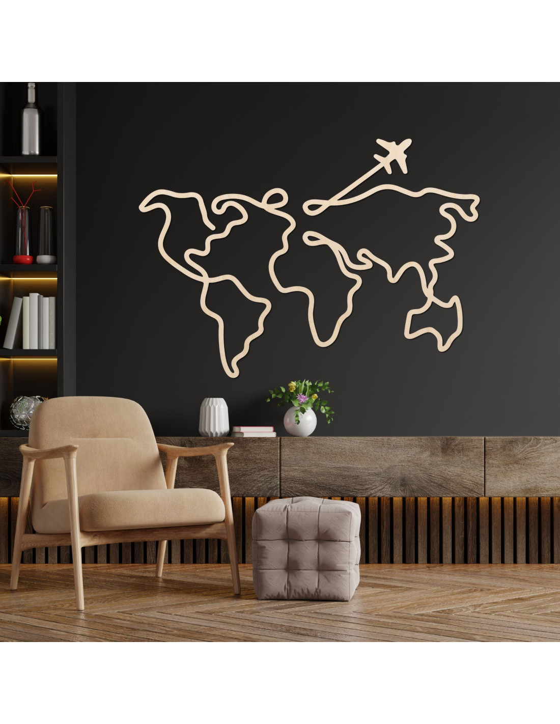 Dřevěná mapa na zeď je stylová dekorace, která spojuje design a cestovatelskou vášeň . Přírodní materiál dodává interiéru teplo a eleganci, zatímco mapa připomíná objevování světa a osobní zážitky.