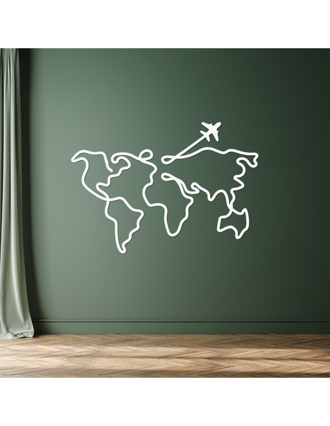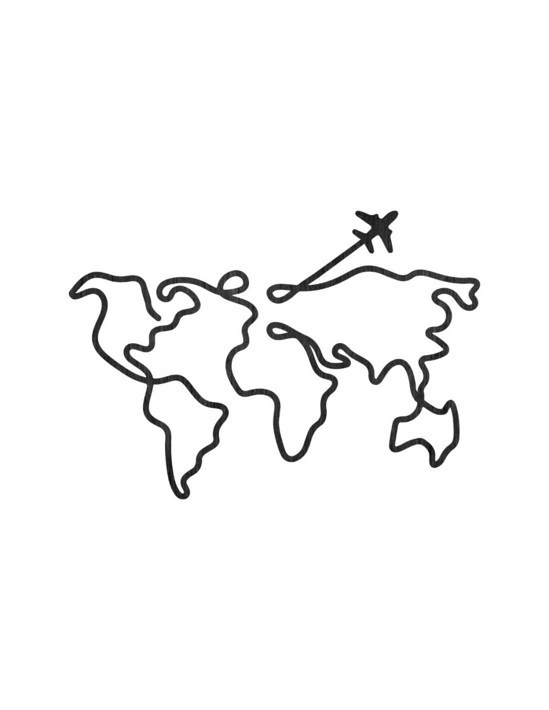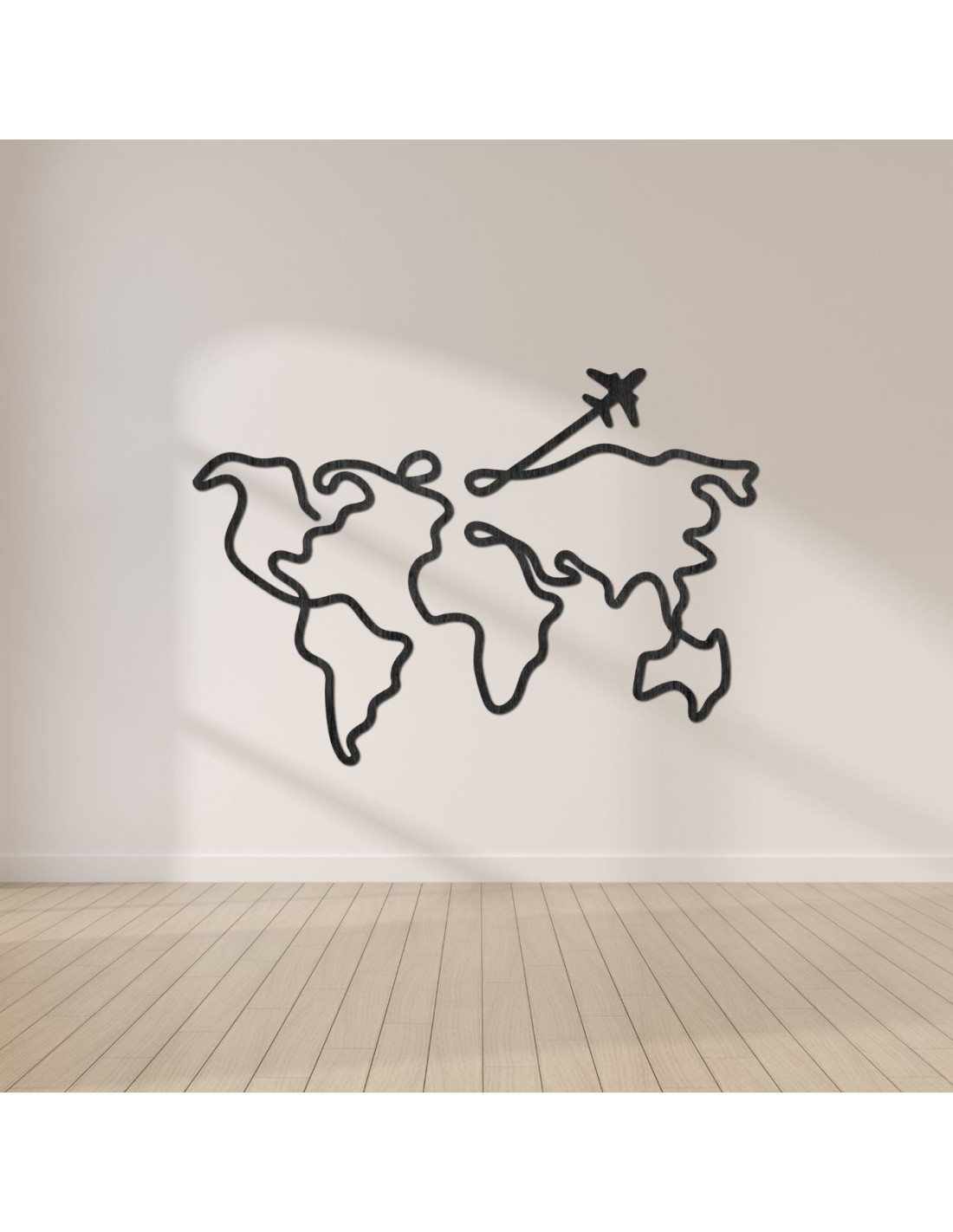 Dřevěná mapa světa na zeď s letadlem a propojenými kontinenty