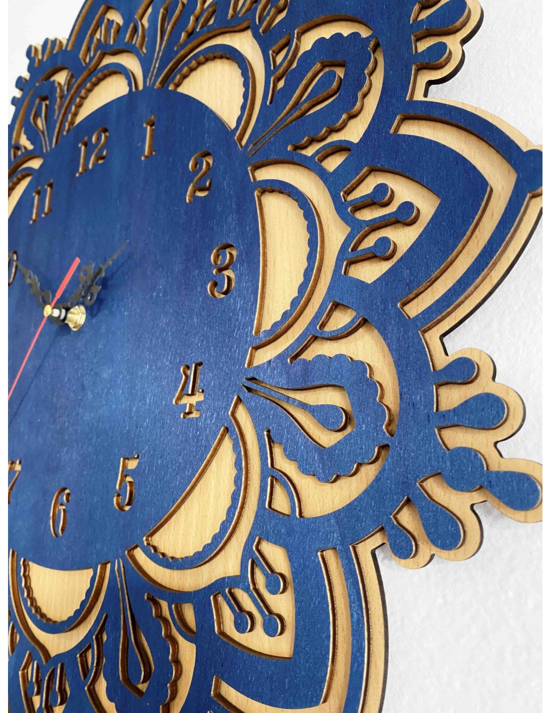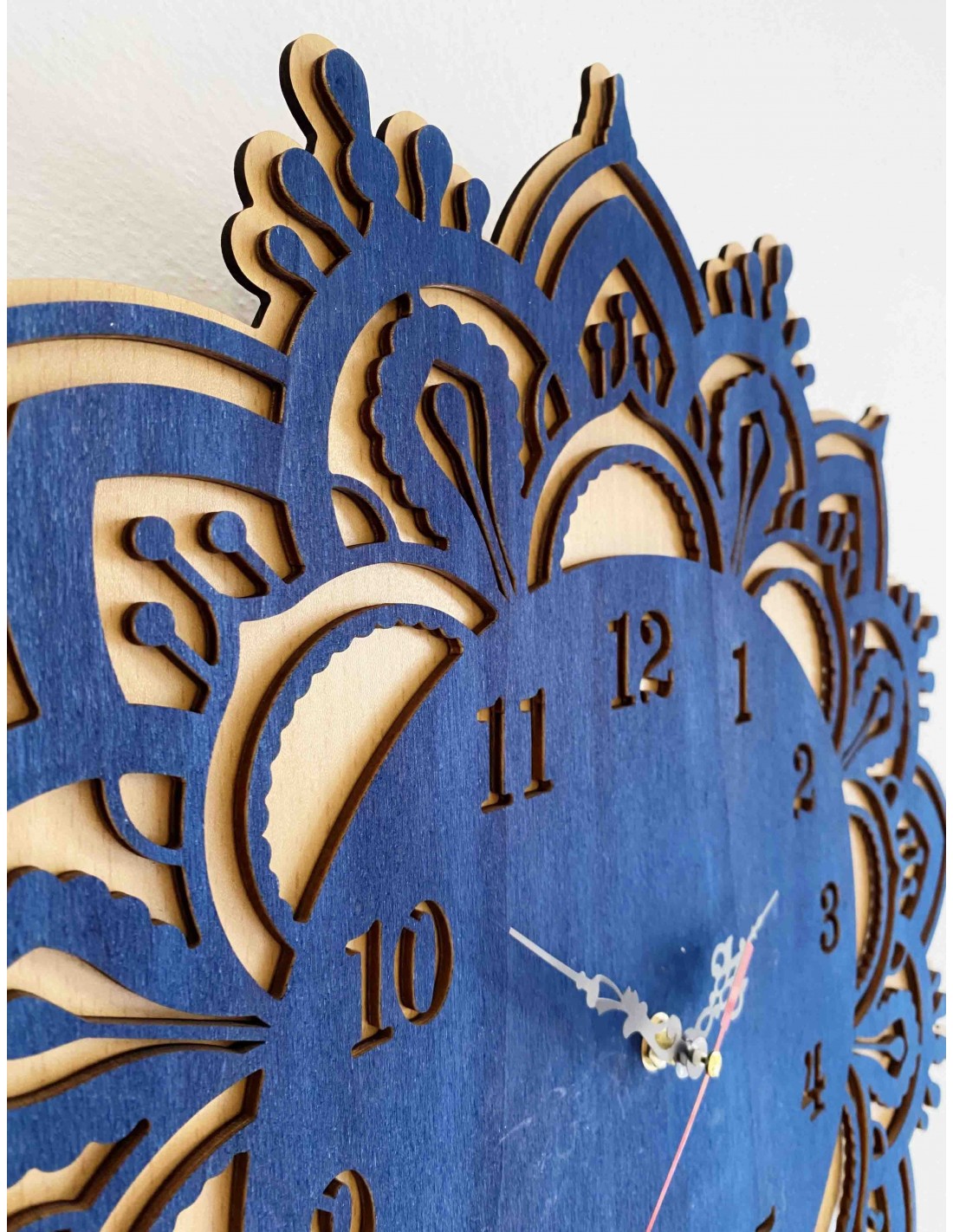 Dřevěné hodiny na zeď modré - dvouvrstvé