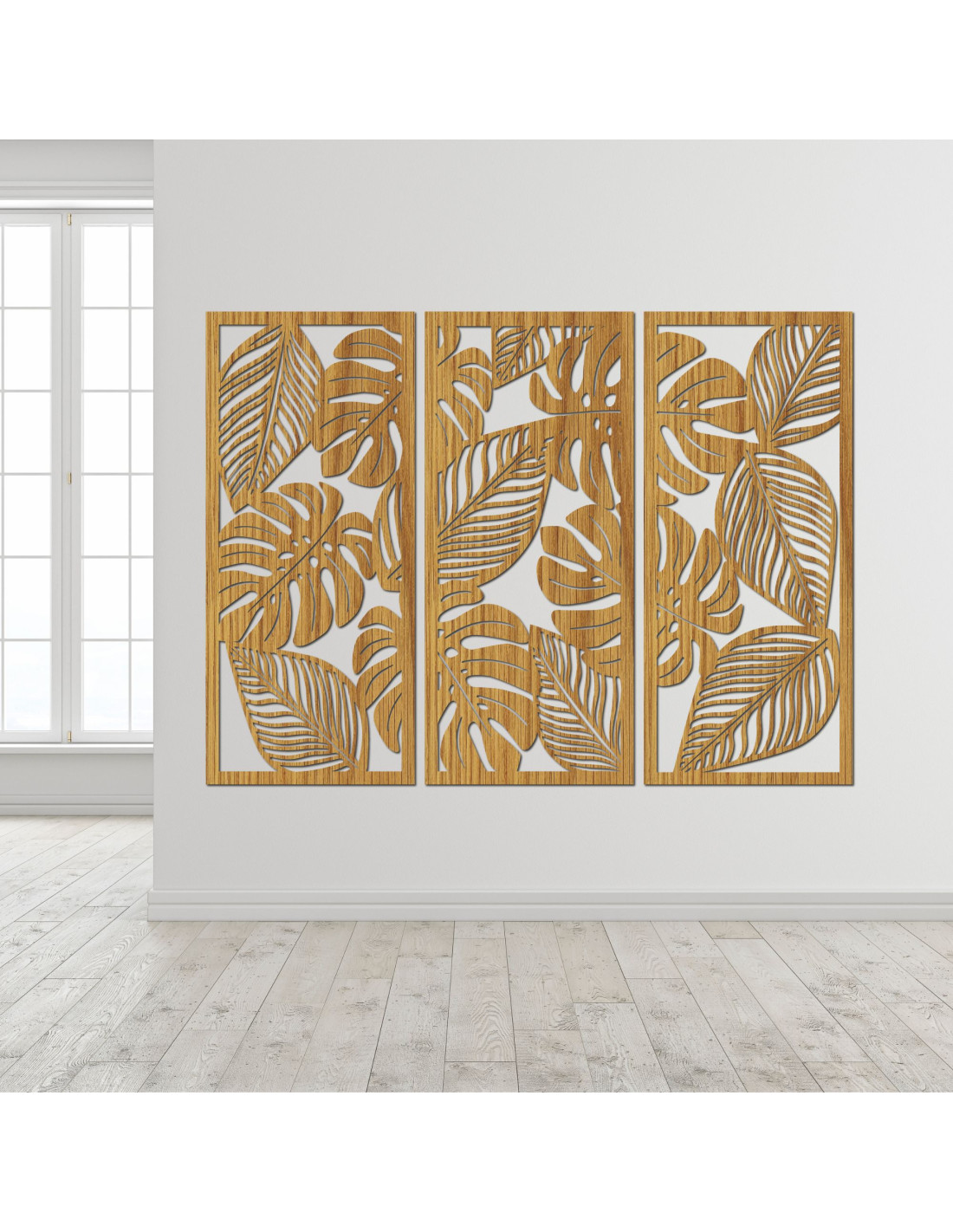 Zažijte přírodní harmonii s naším třídílným dřevěným obrazem na zeď Monstera .