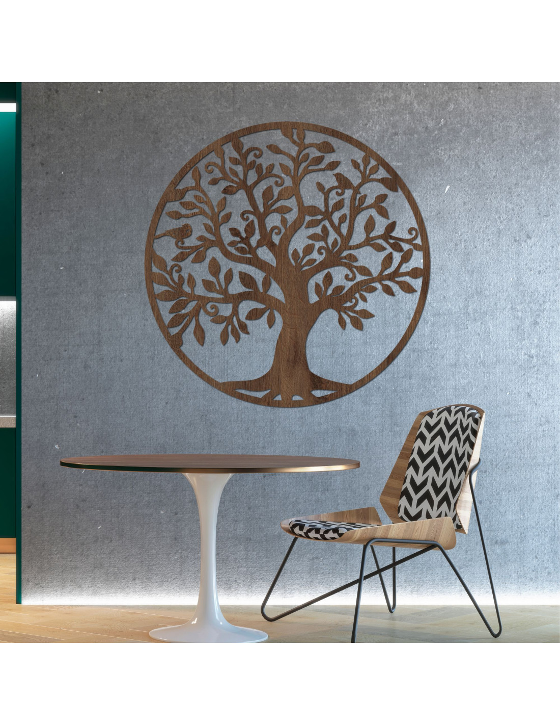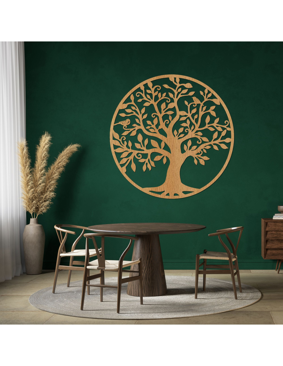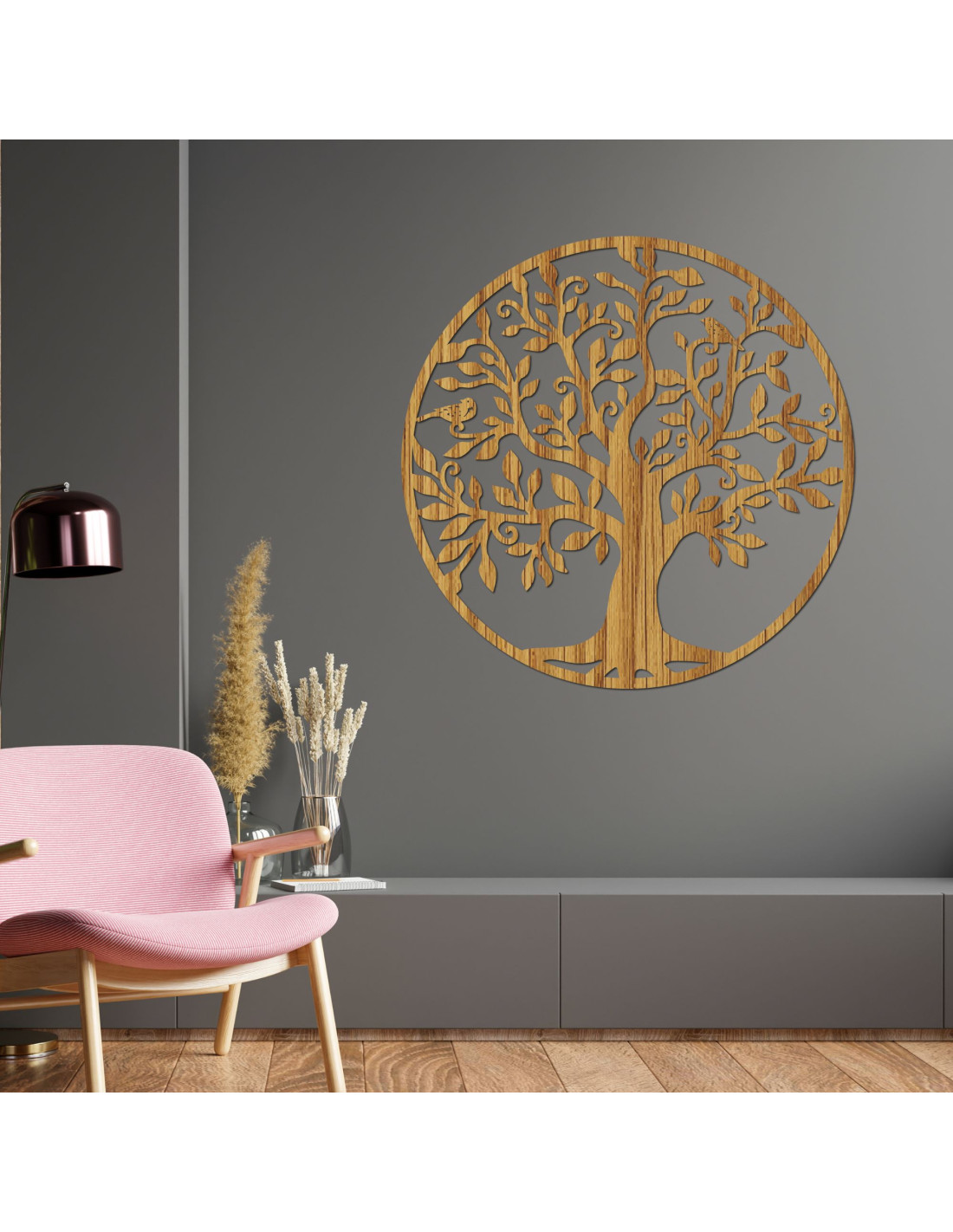 Symbolický strom života v dřevěném provedení dodává domovu nádech přírody a duchovní rovnováhy.