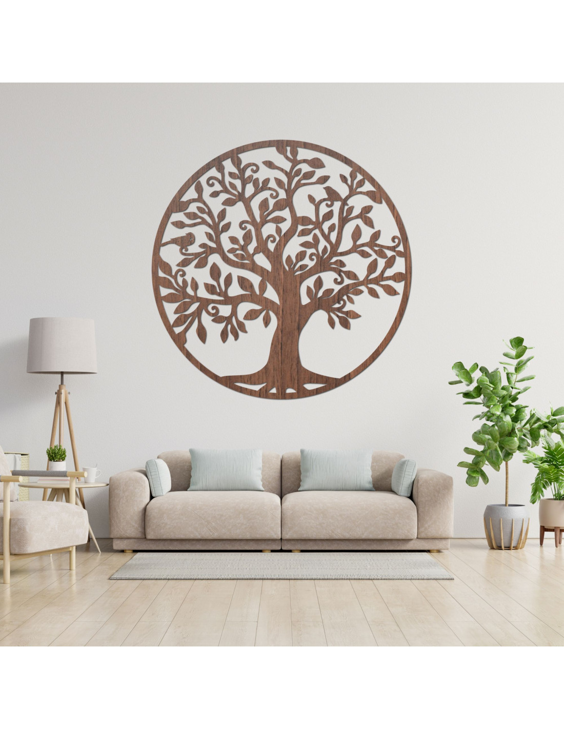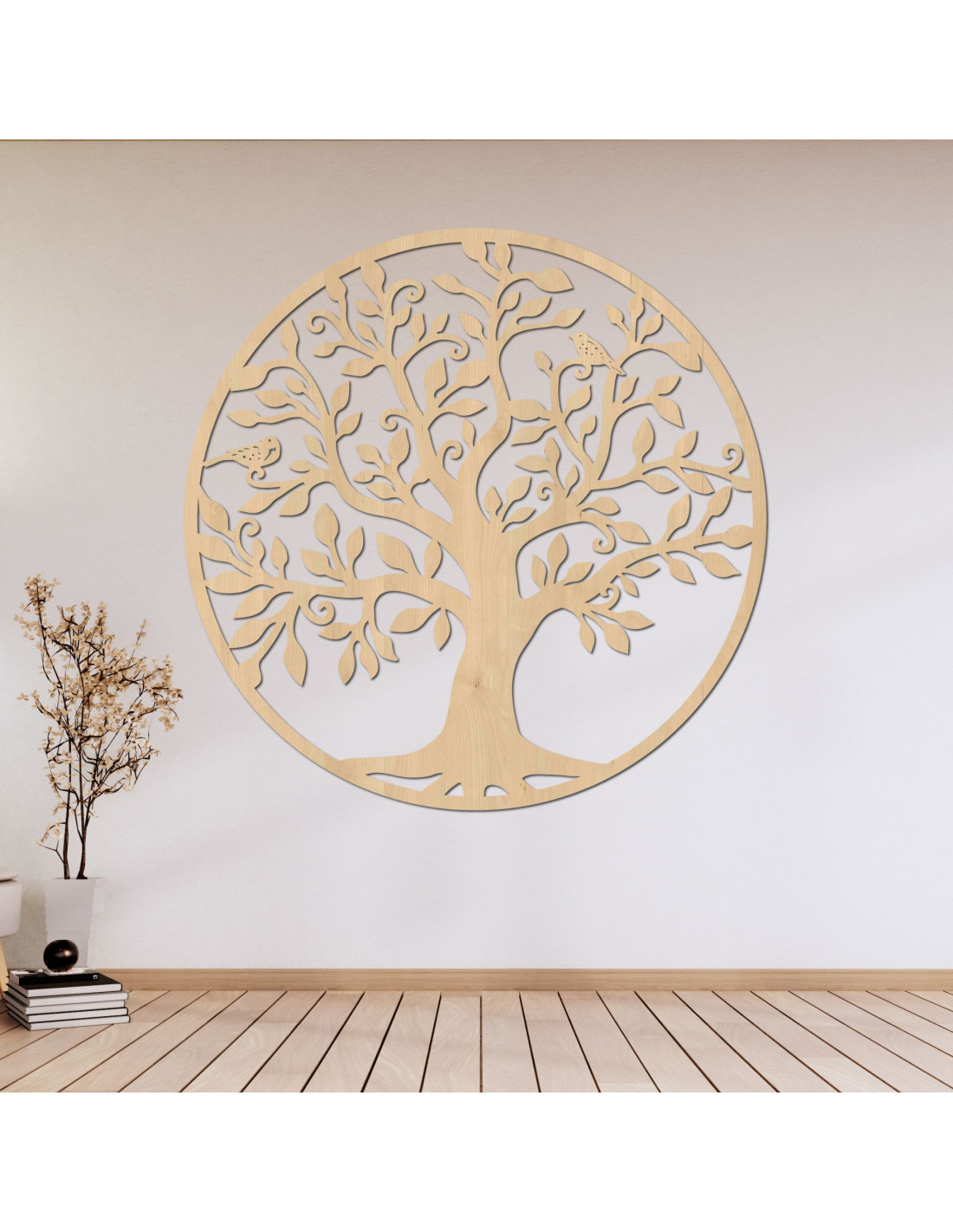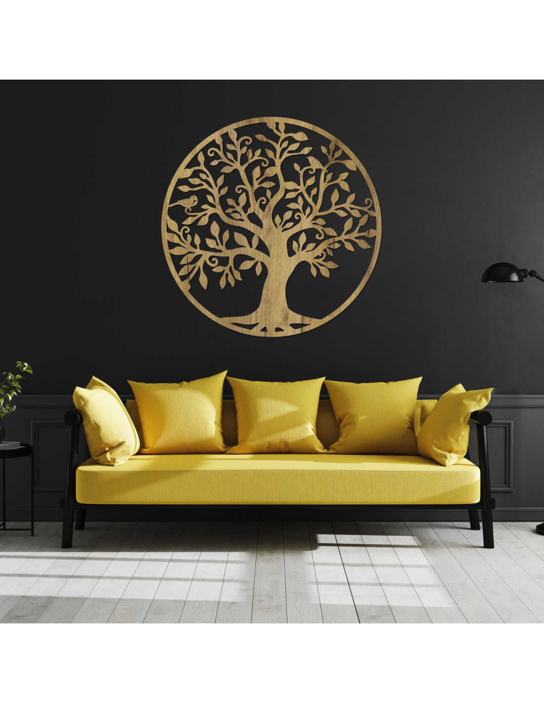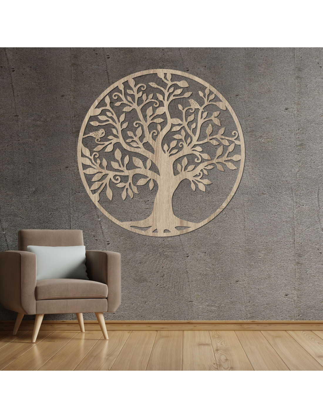 Symbolický strom života v dřevěném provedení dodává domovu nádech přírody a duchovní rovnováhy.