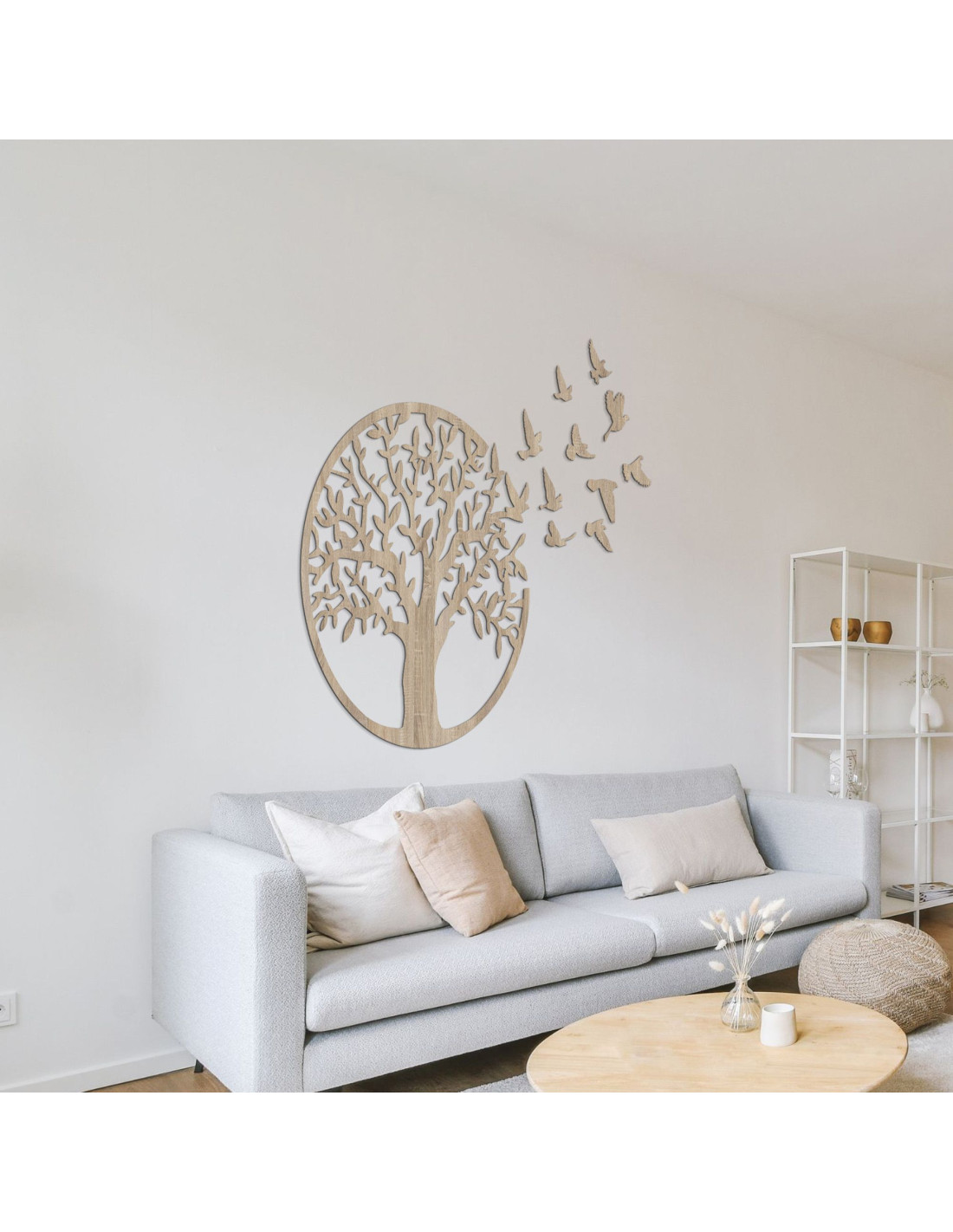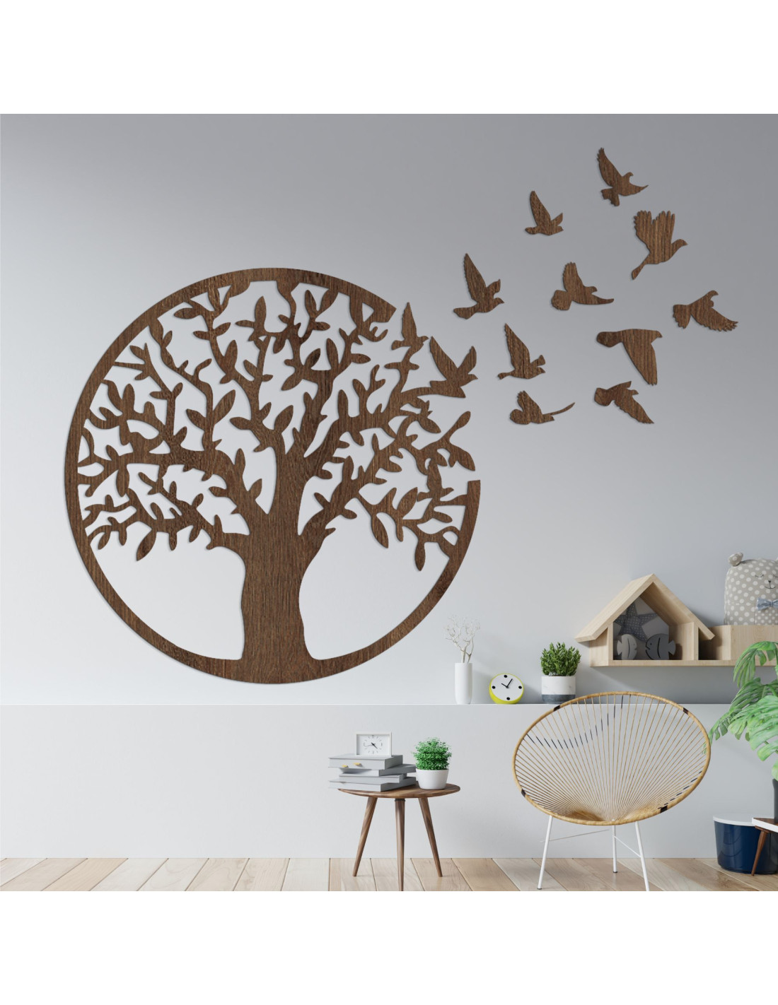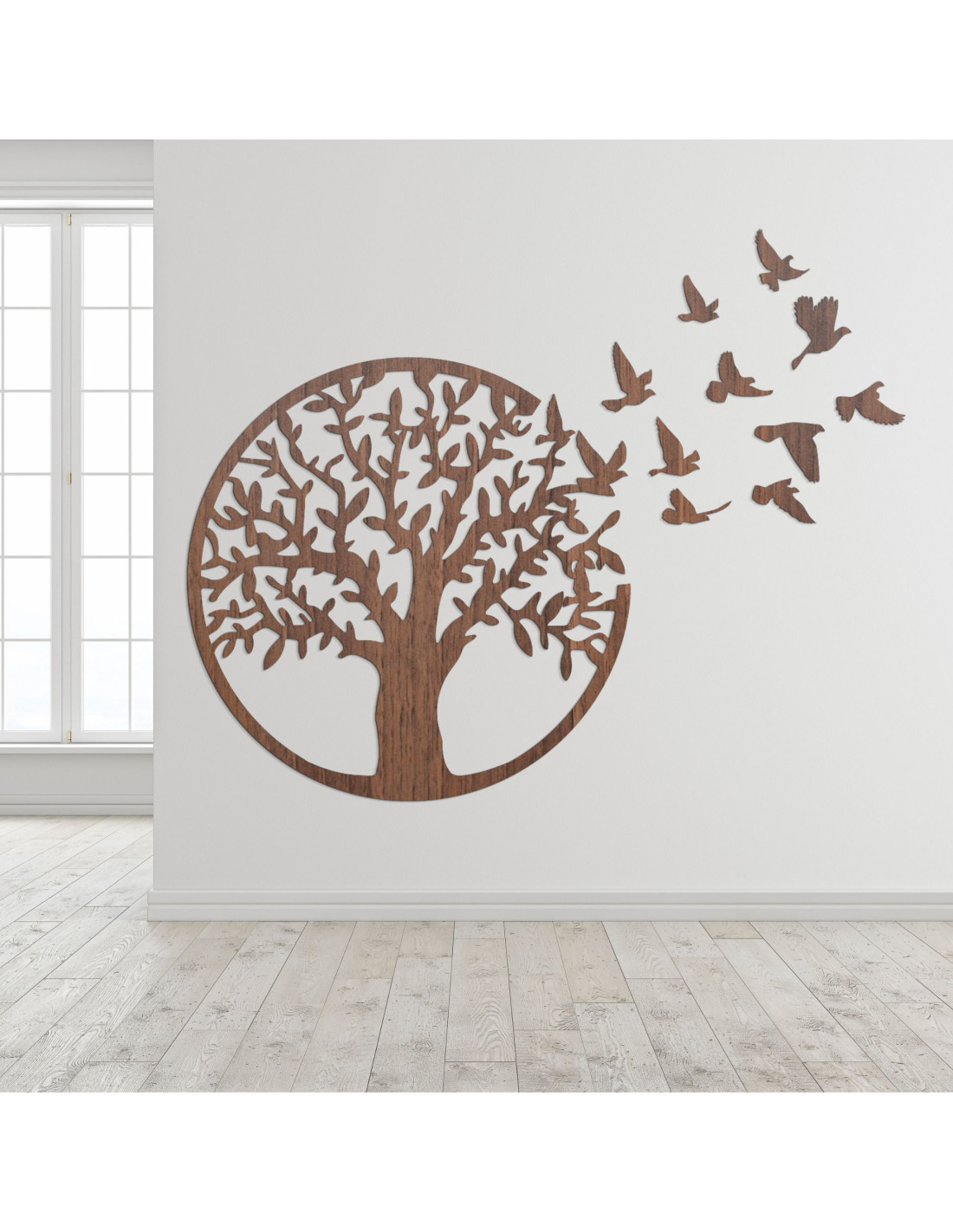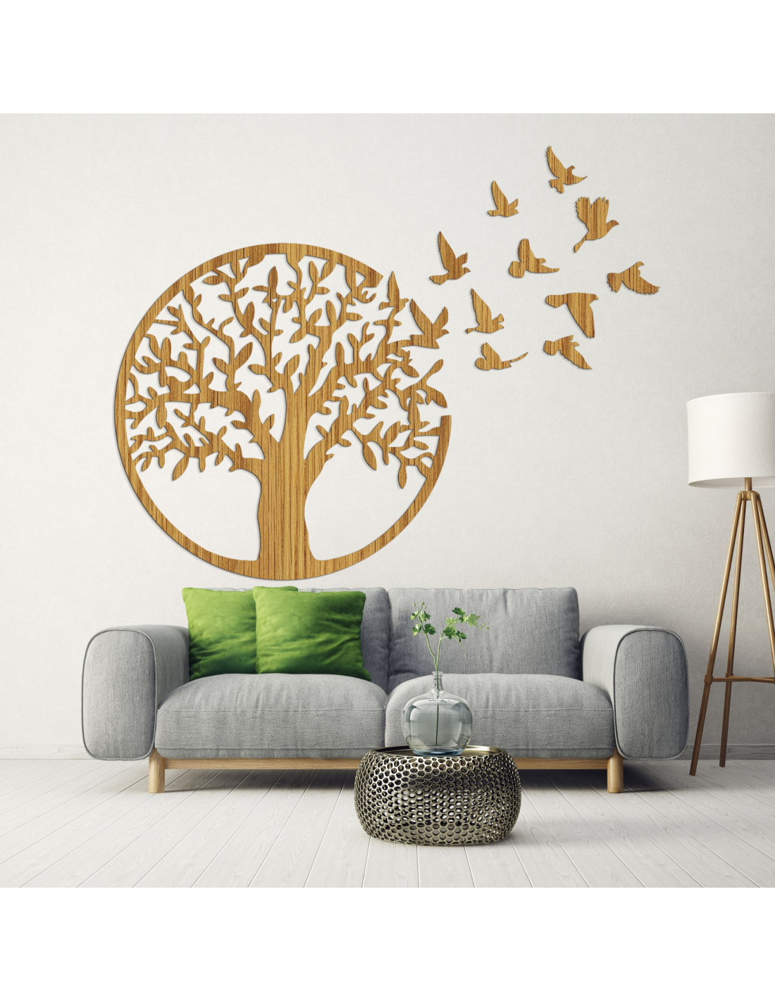 Oživte svůj interiér elegantní dřevěnou nástěnnou dekorací, která zachycuje krásu stromu se vzlétajícími ptáky. Toto jedinečné umělecké dílo je ideální pro ty, kteří hledají moderní a přírodní akcenty ve svých prostorách.