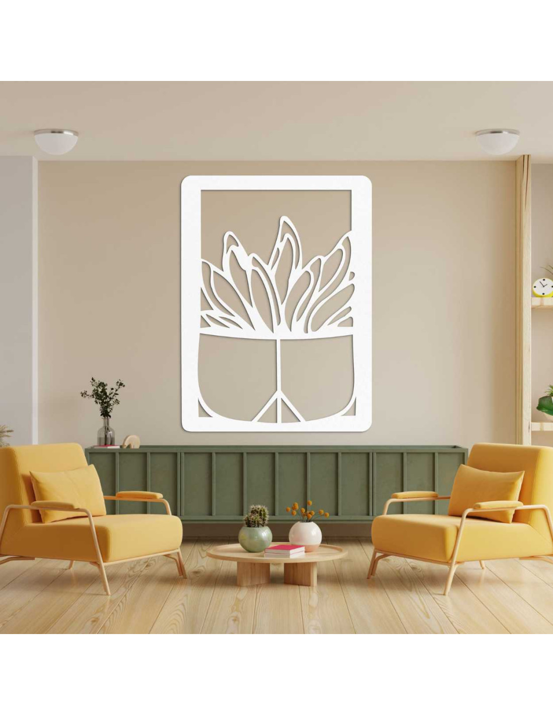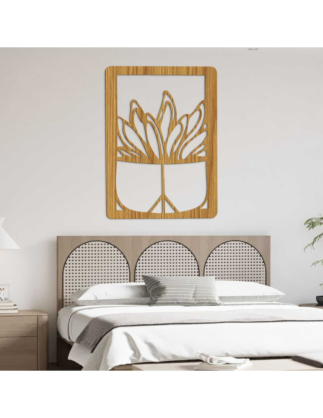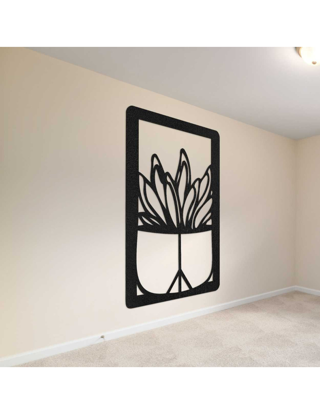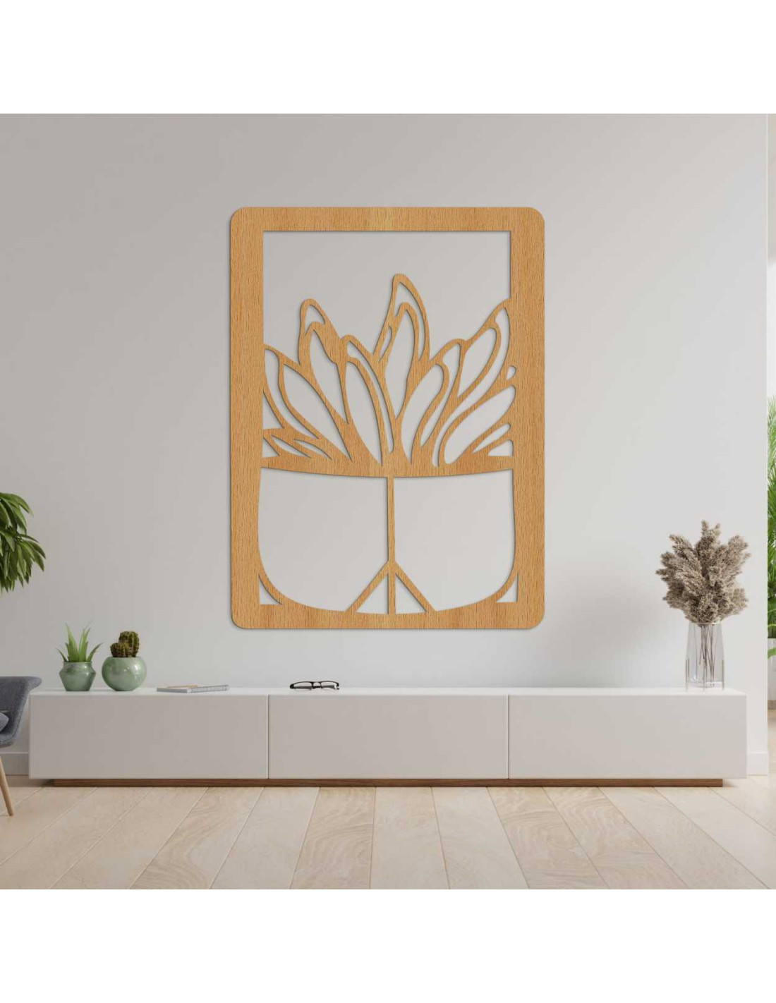Dřevěný nástěnný obraz – Rostlina v květináči | Moderní dřevořezba do interiéru - GEERA