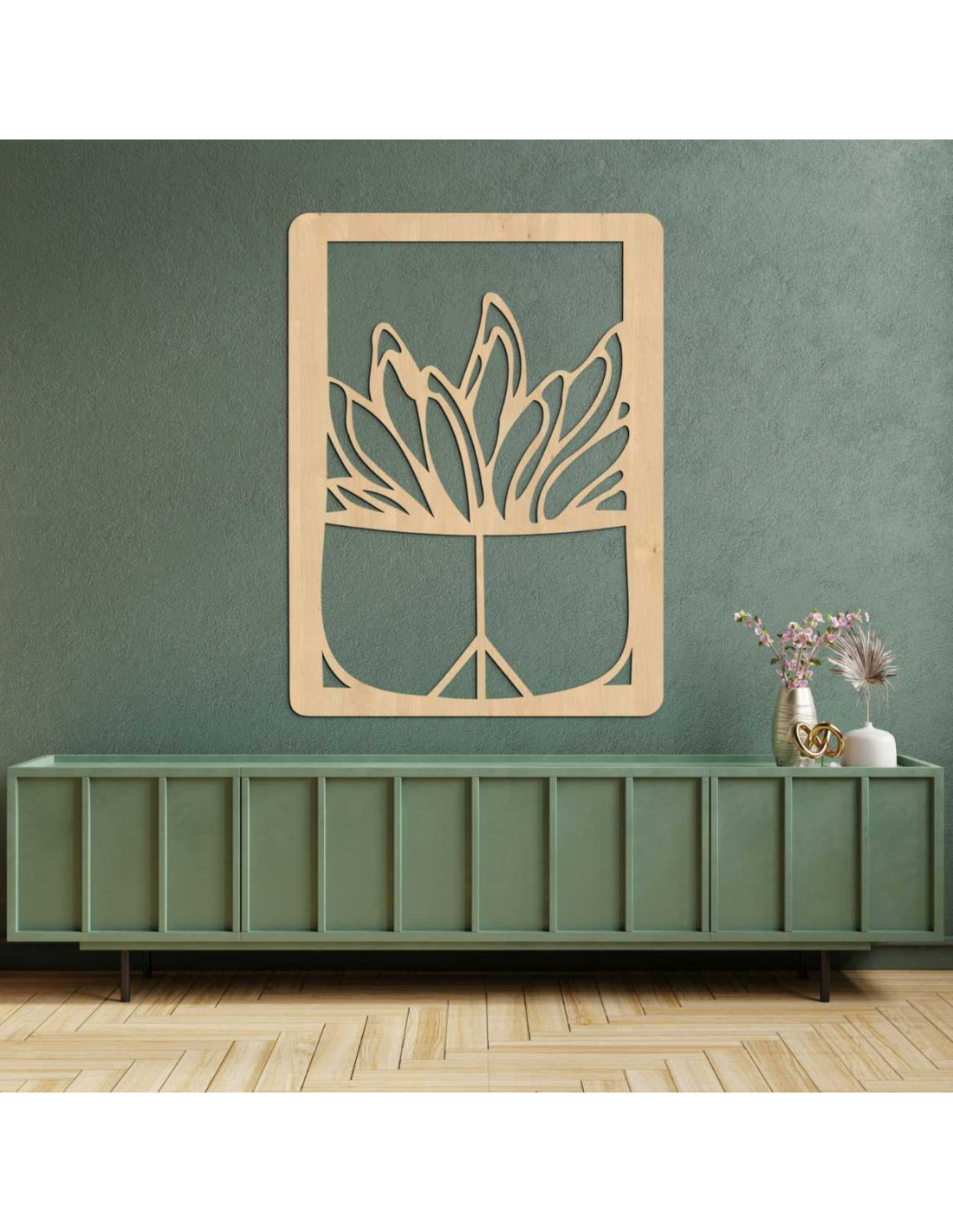 Moderní dřevěný obraz do obývacího pokoje s elegantním rostlinným designem