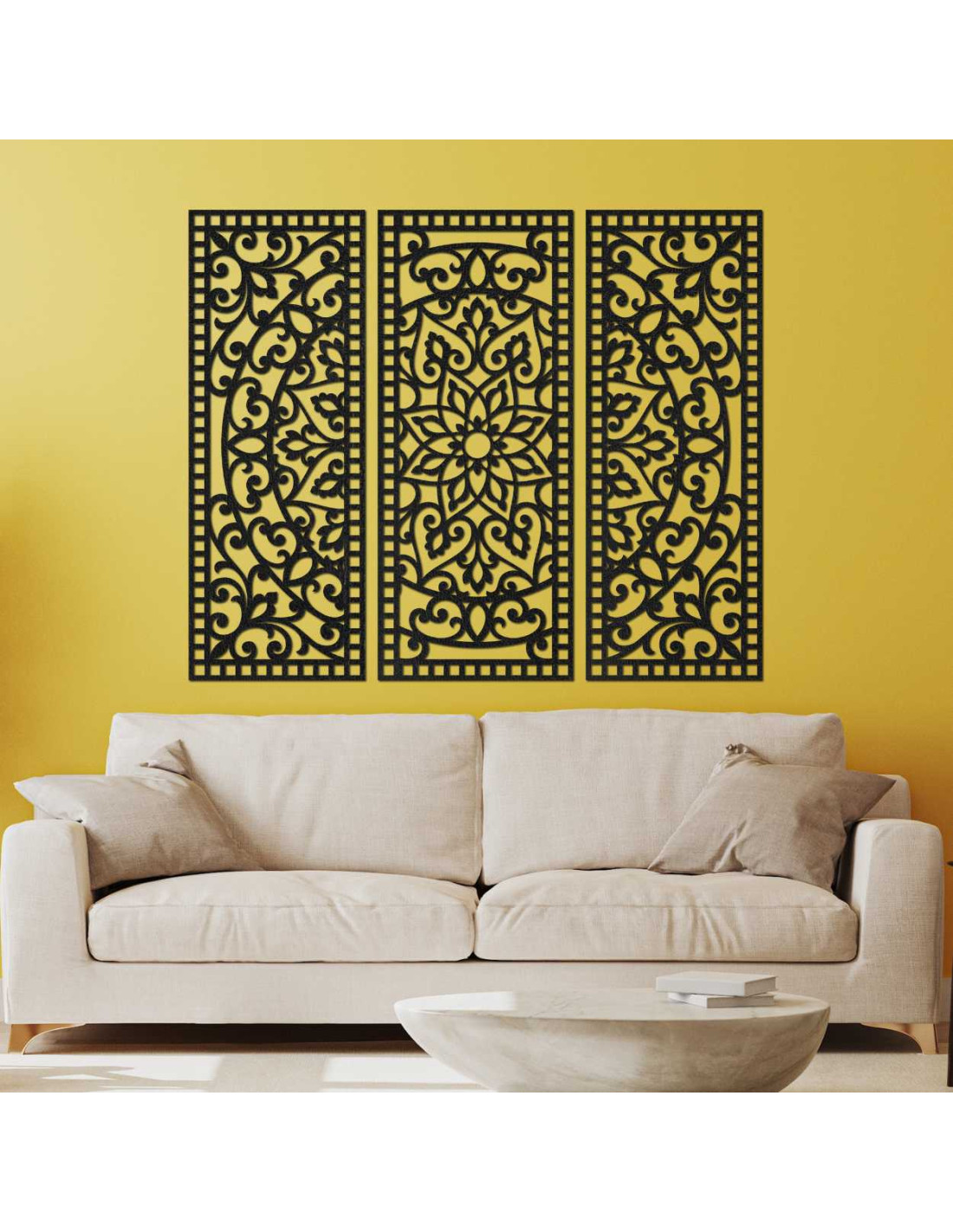 Elegance, rovnováha a přesnost ruční práce se spojují v jedinečném uměleckém díle Květinová mandala ze dřeva – boho 3dílná nástěnná dekorace . Jemně vyřezávané detaily a harmonická kompozice tří panelů vytvářejí dokonalou rovnováhu mezi přírodou a geometrií , čímž přemění jakýkoli prostor na místo klidu a inspirace.