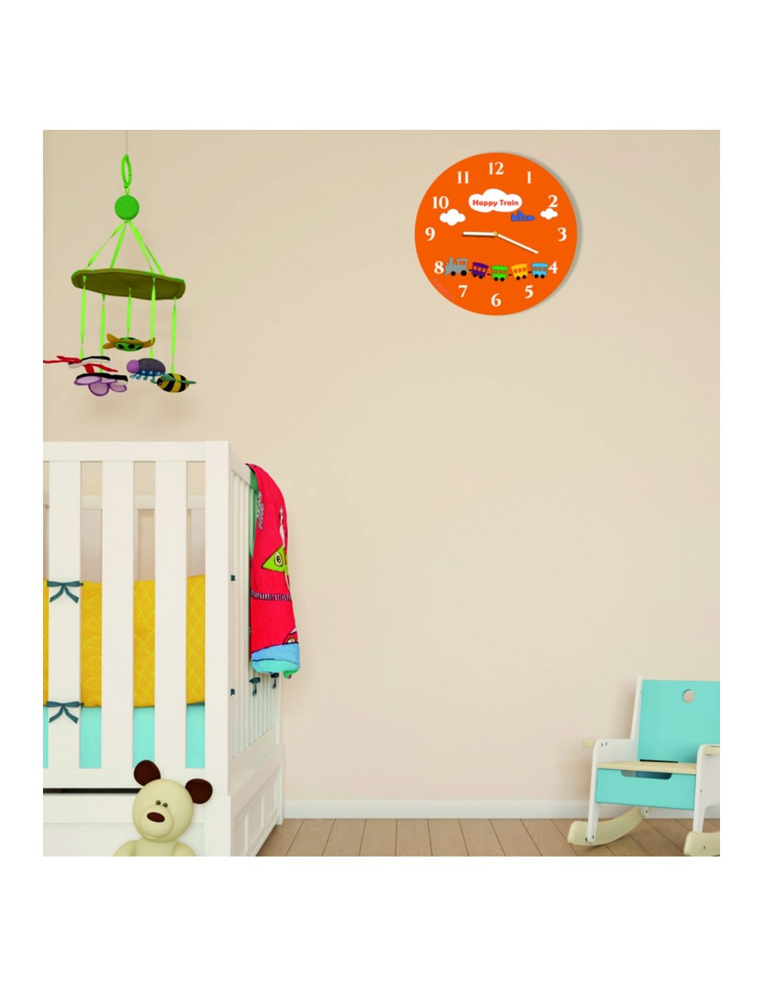 Nástěnné hodiny pro děti vlak - HAPPY