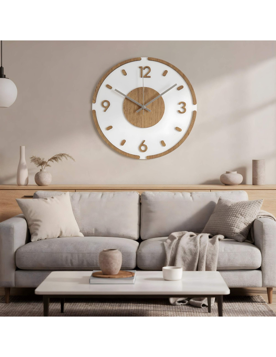 Nástěnné hodiny Modern Wood & White – 3D Dubový dekor