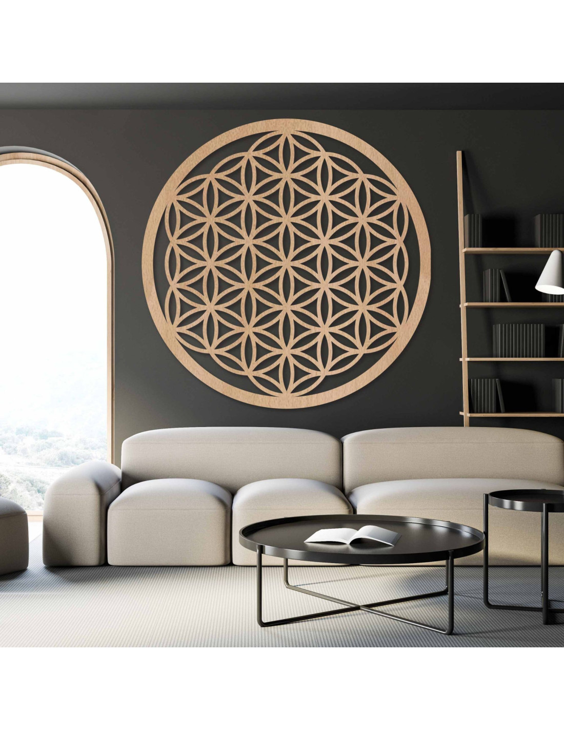 Elegantní dřevěná mandala Květ života. Harmonizuje prostor, přináší klid a energii. Ruční výroba na Slovensku od SENTOP.