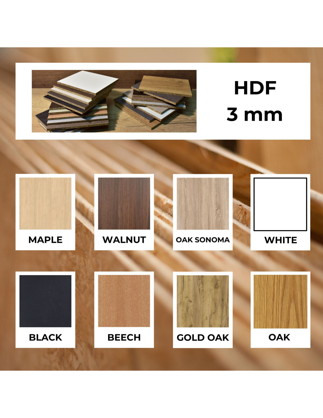 • Překližka má tloušťku 5 mm / HDF má tloušťku 3 mm.